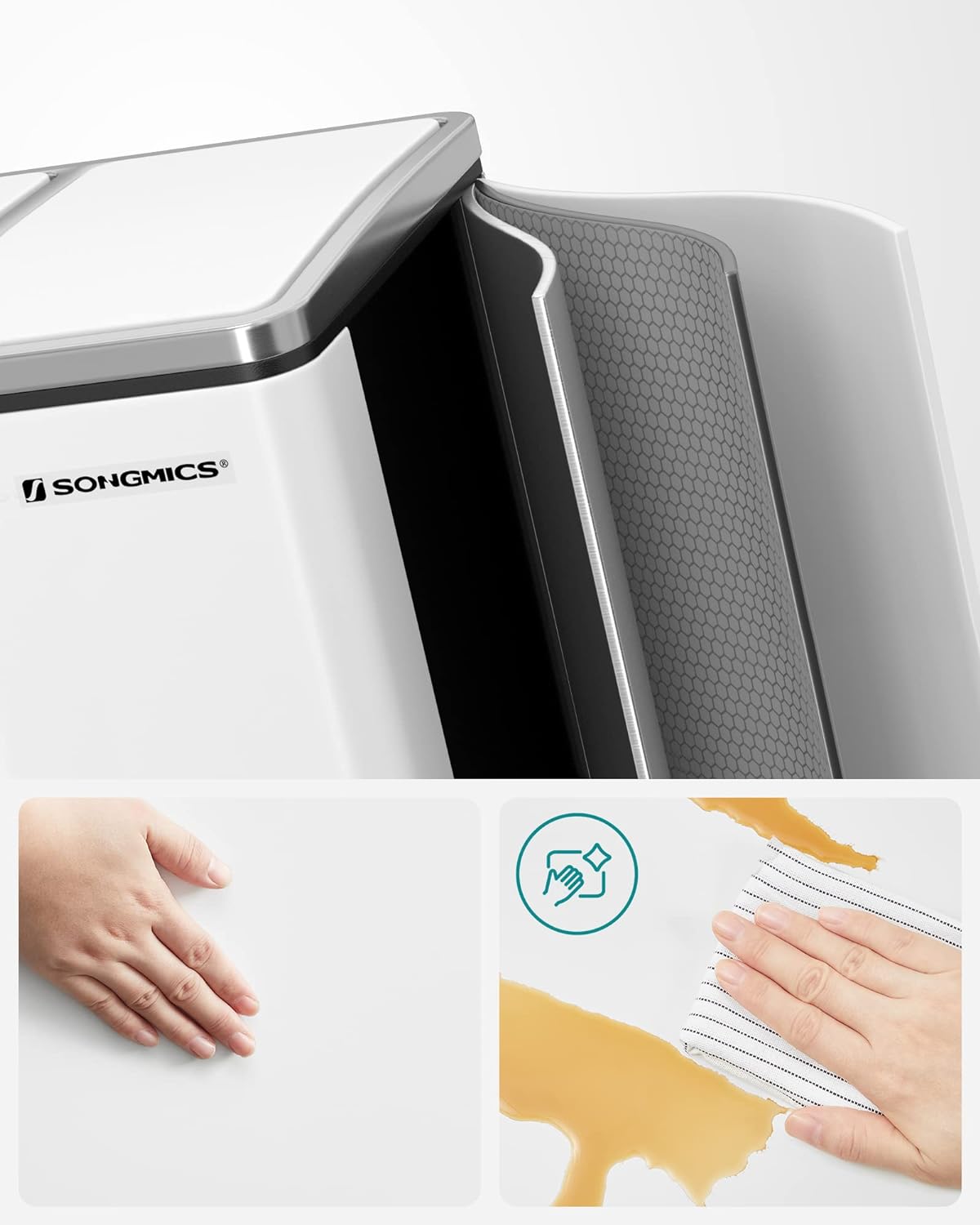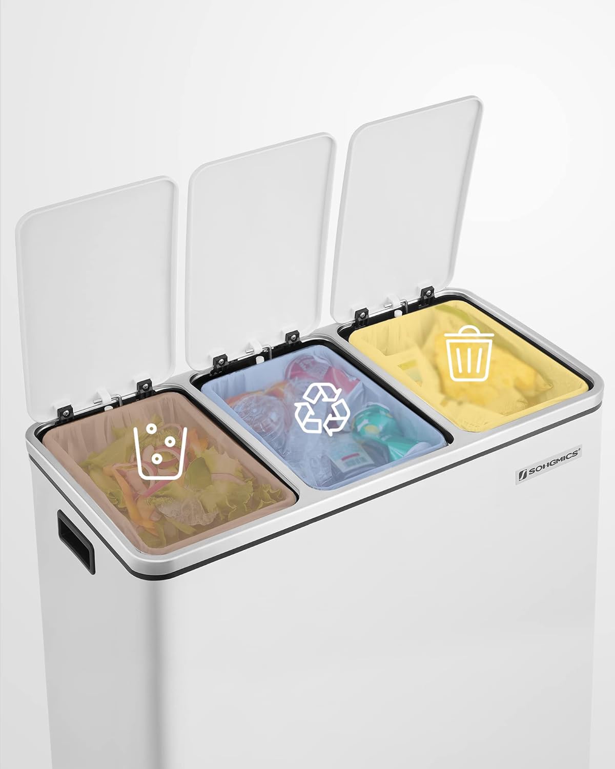 SONGMICS Cos de gunoi din inox cu 3 compartimente colectare selectiva, cu galeti interioare, 3x18litri, 62x32x56cm, alb Household NewTrend