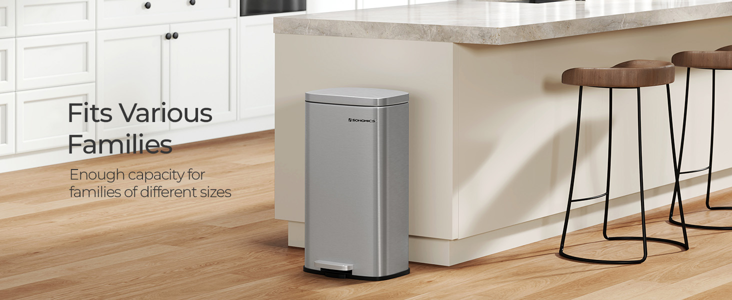 SONGMICS Cos de gunoi din otel cu pedala, galeata interioara plastic, capac inchidere lenta, 30L, 35x30x63cm, argintiu Household NewTrend