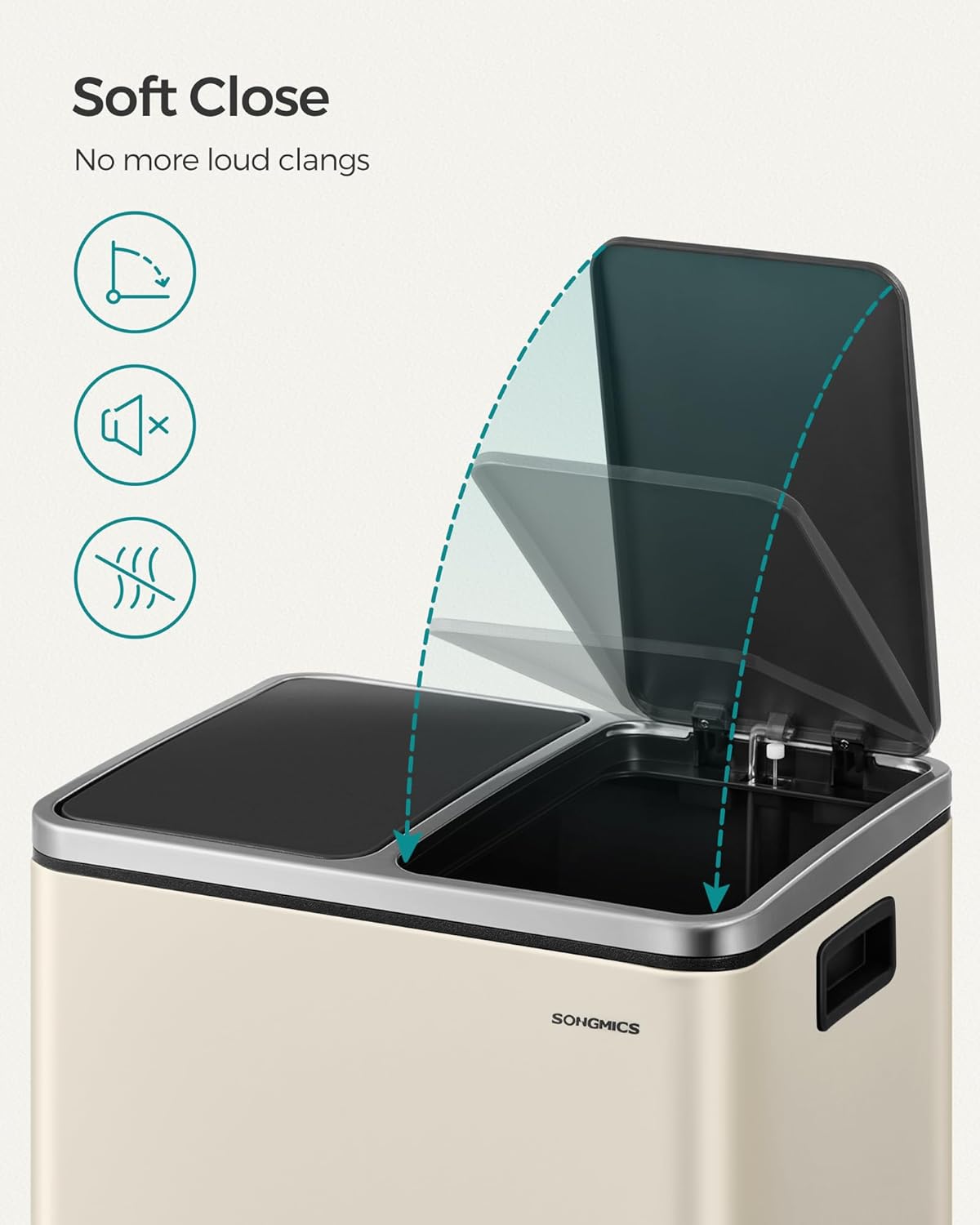 SONGMICS Cos de gunoi dublu 41x32x47 cm, 2x15L, pedale separate, capac soft-close si galeata detasabila, bej si negru Household NewTrend