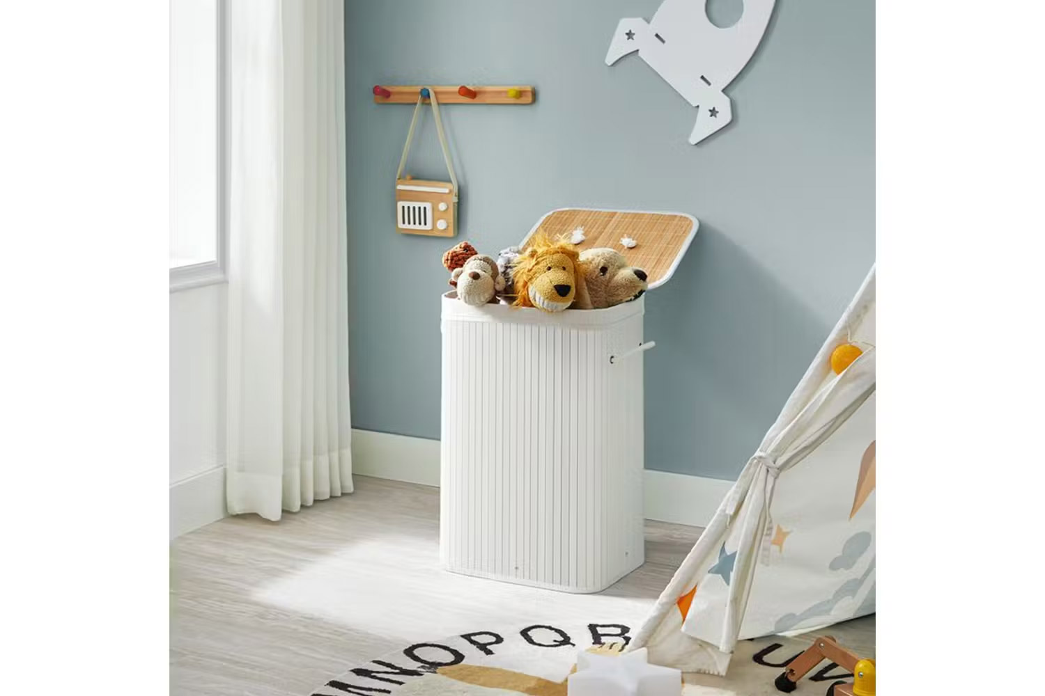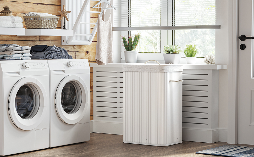 SONGMICS Cos de rufe din bambus, pliabil, cu captuseala detasabila lavabila, 72L, 40x30x60cm, alb Household NewTrend