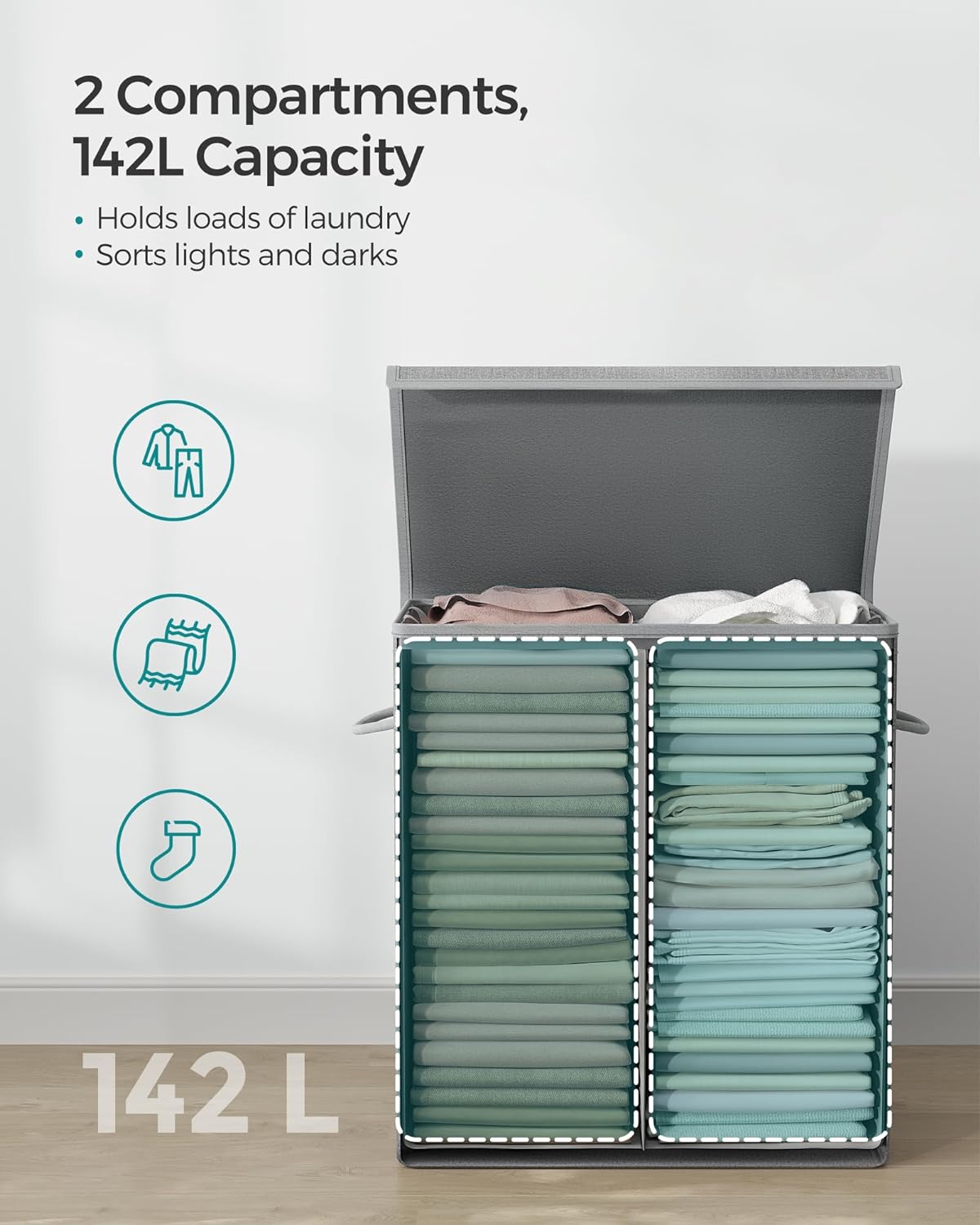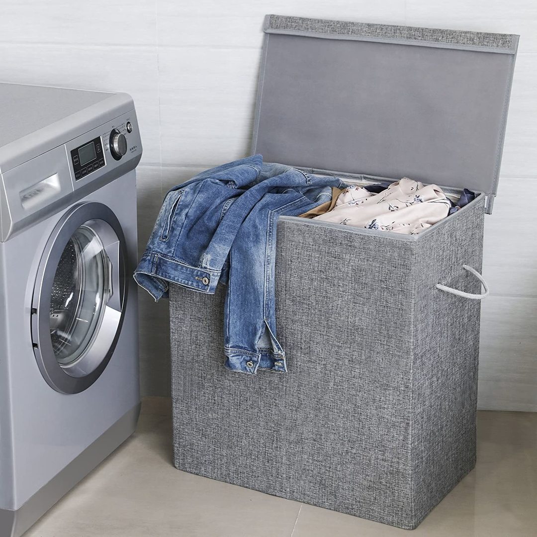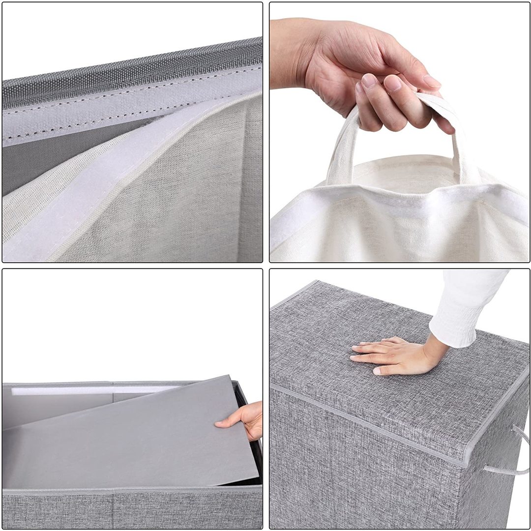 SONGMICS Cos de rufe textil, pliabil, 2 compartimente, saci detasabili, 142L, 60x36x66cm, gri Household NewTrend