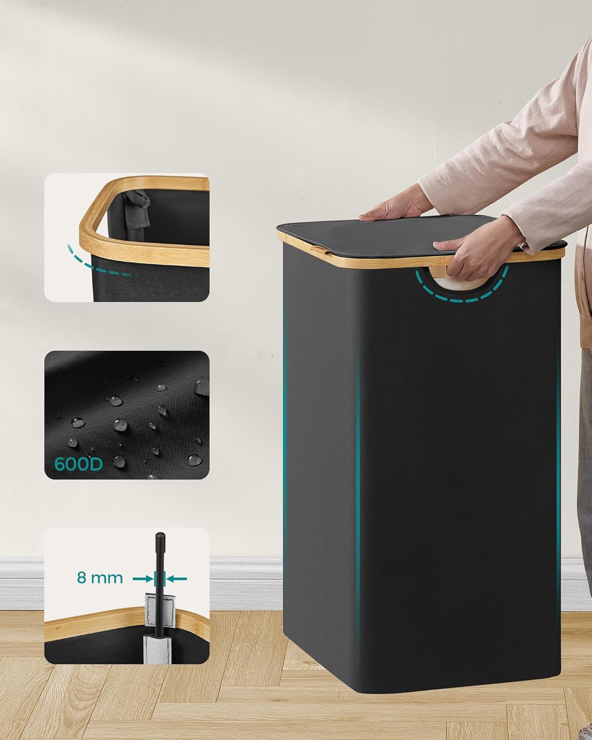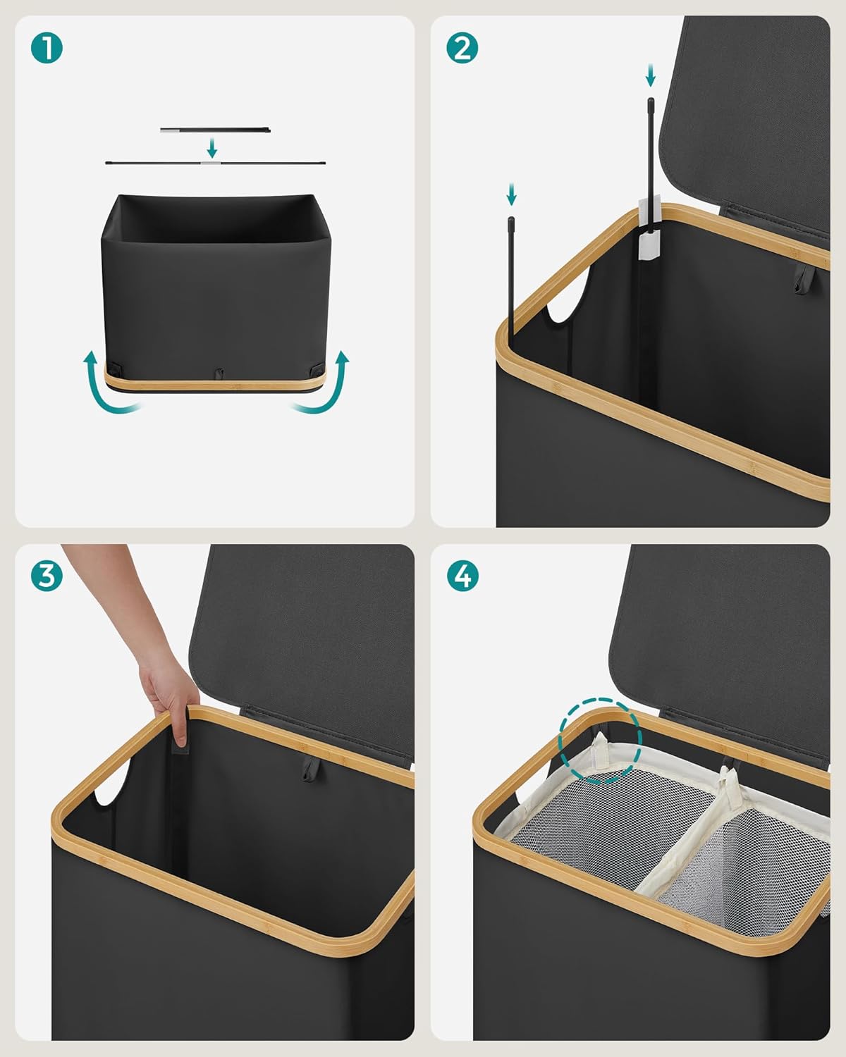 SONGMICS Cos de rufe textil, pliabil, cu 2 compartimente detasabile, 130L, 52x39x71 cm, negru Household NewTrend