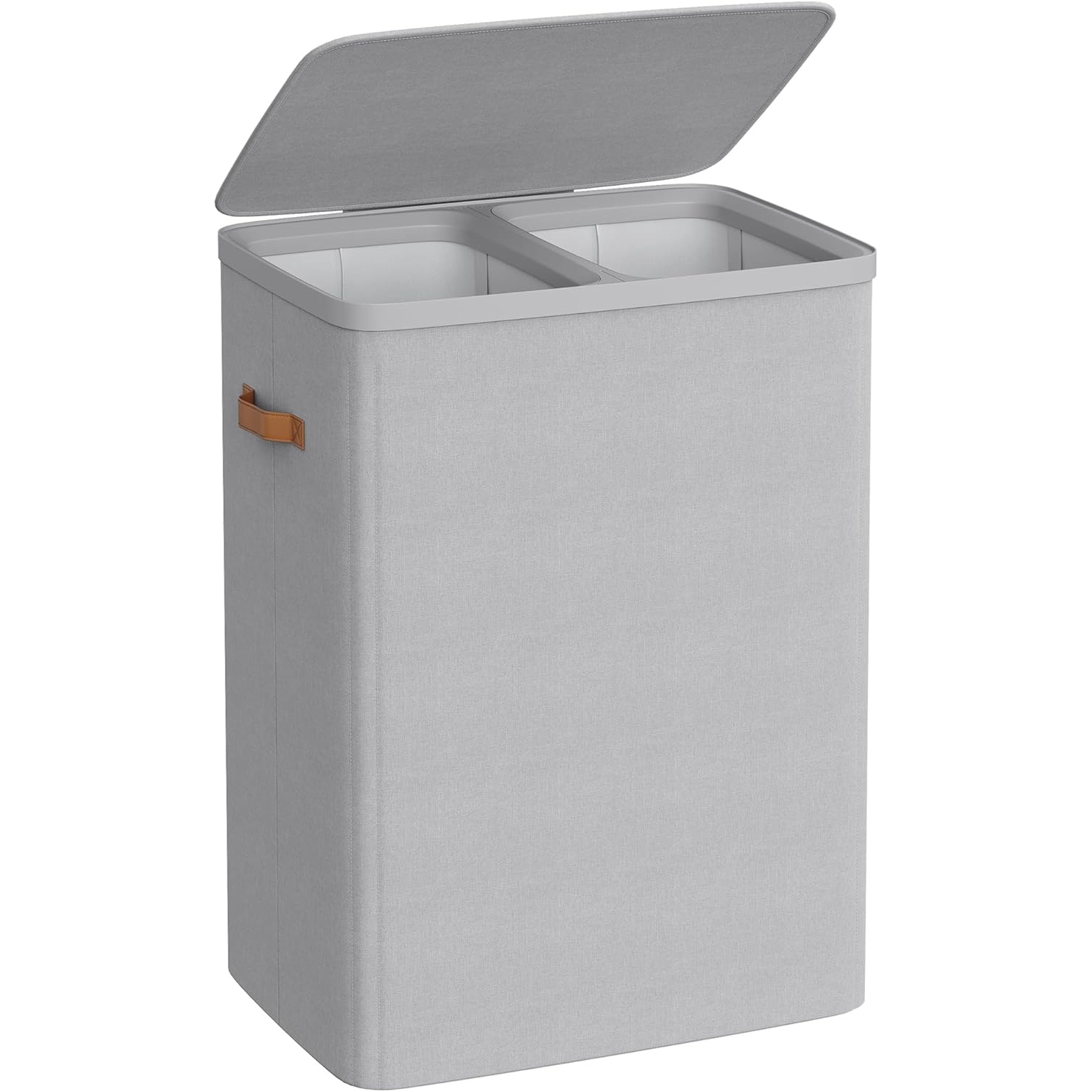 SONGMICS Cos rufe cu 2 compartimente si capac, saci detasabili cu maner, 170 litri, 56x40x75 cm, gri Household NewTrend
