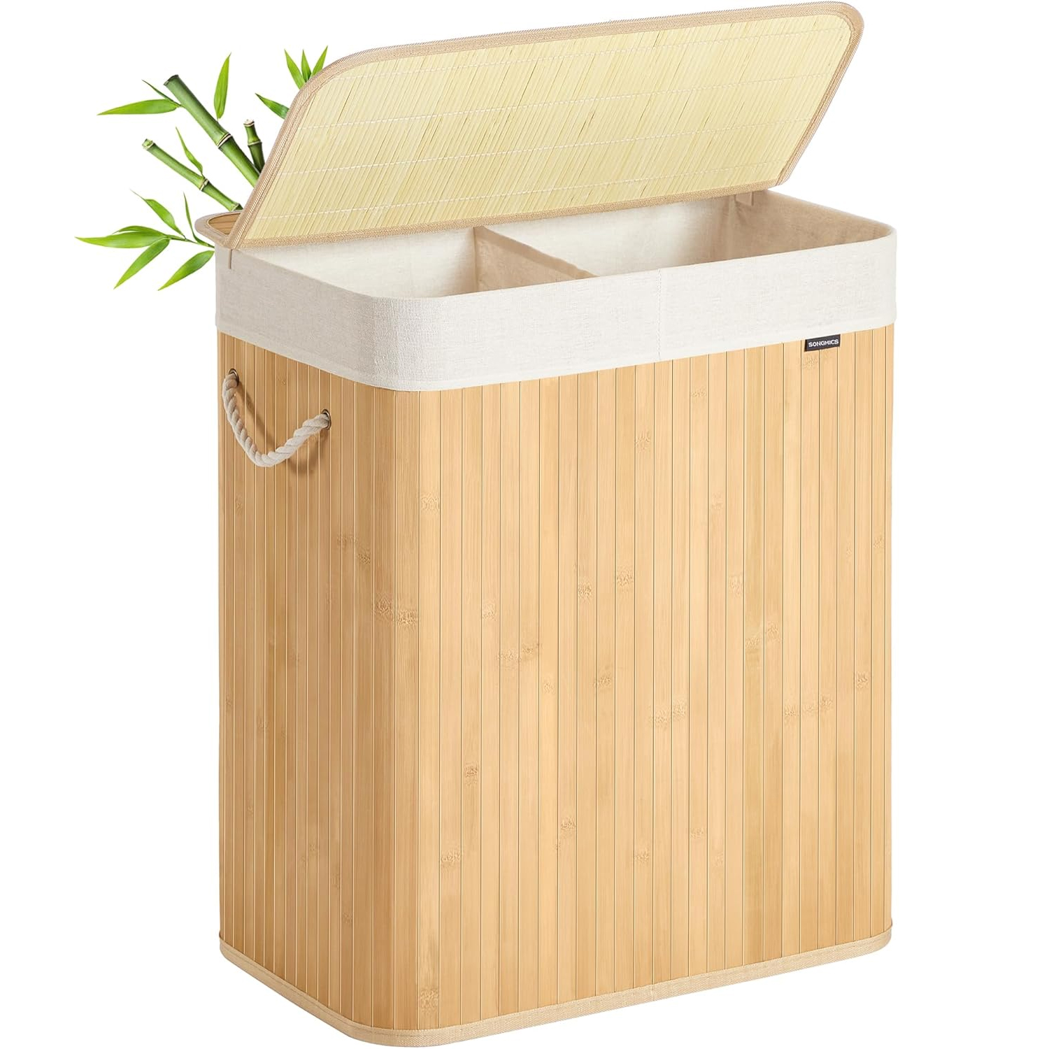 Descriere SONGMICS Cos rufe bambus 2 compartimente,