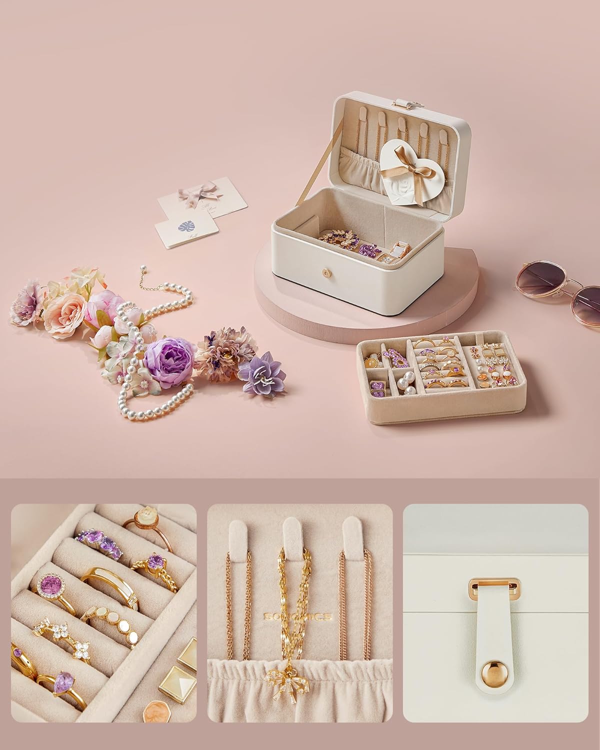 Descriere SONGMICS Cutie bijuterii 2 niveluri, compartimente