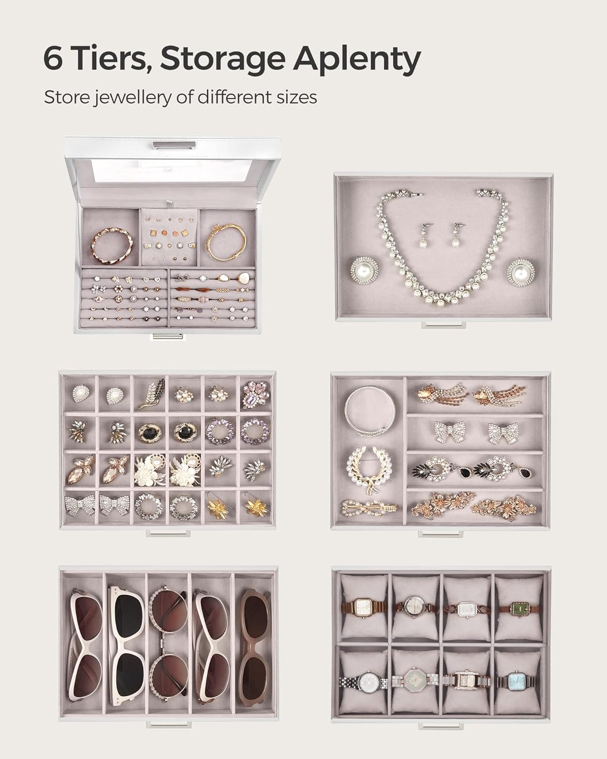 Descriere SONGMICS Cutie bijuterii MDF 6 nivele,