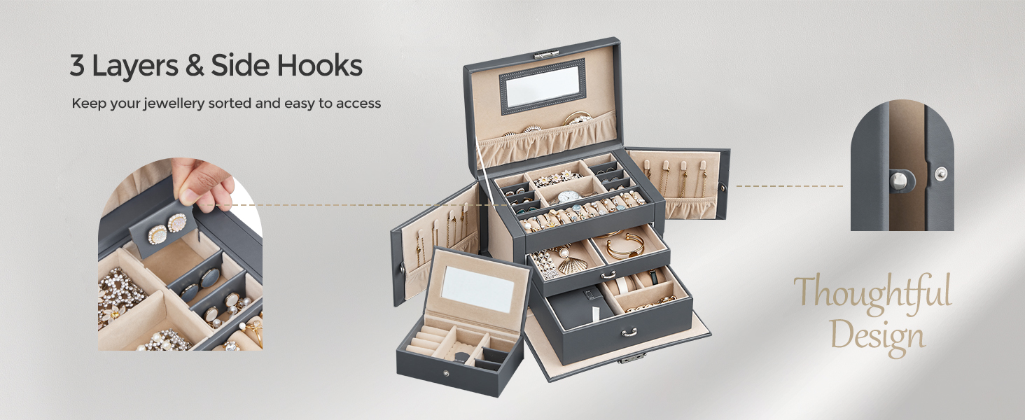 Descriere SONGMICS Cutie bijuterii 3 nivele, 2