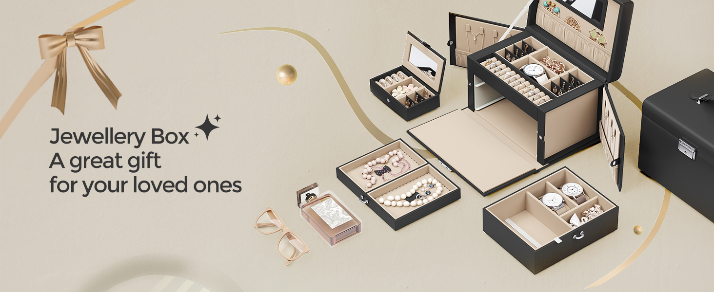 Descriere SONGMICS Cutie bijuterii 3 nivele, 2