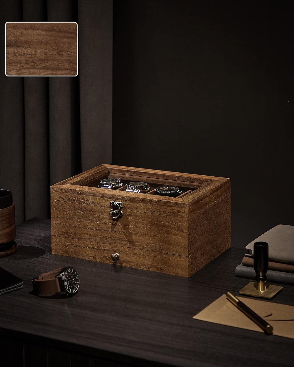 Recenzii Produse SONGMICS Cutie ceasuri lemn masiv, 8