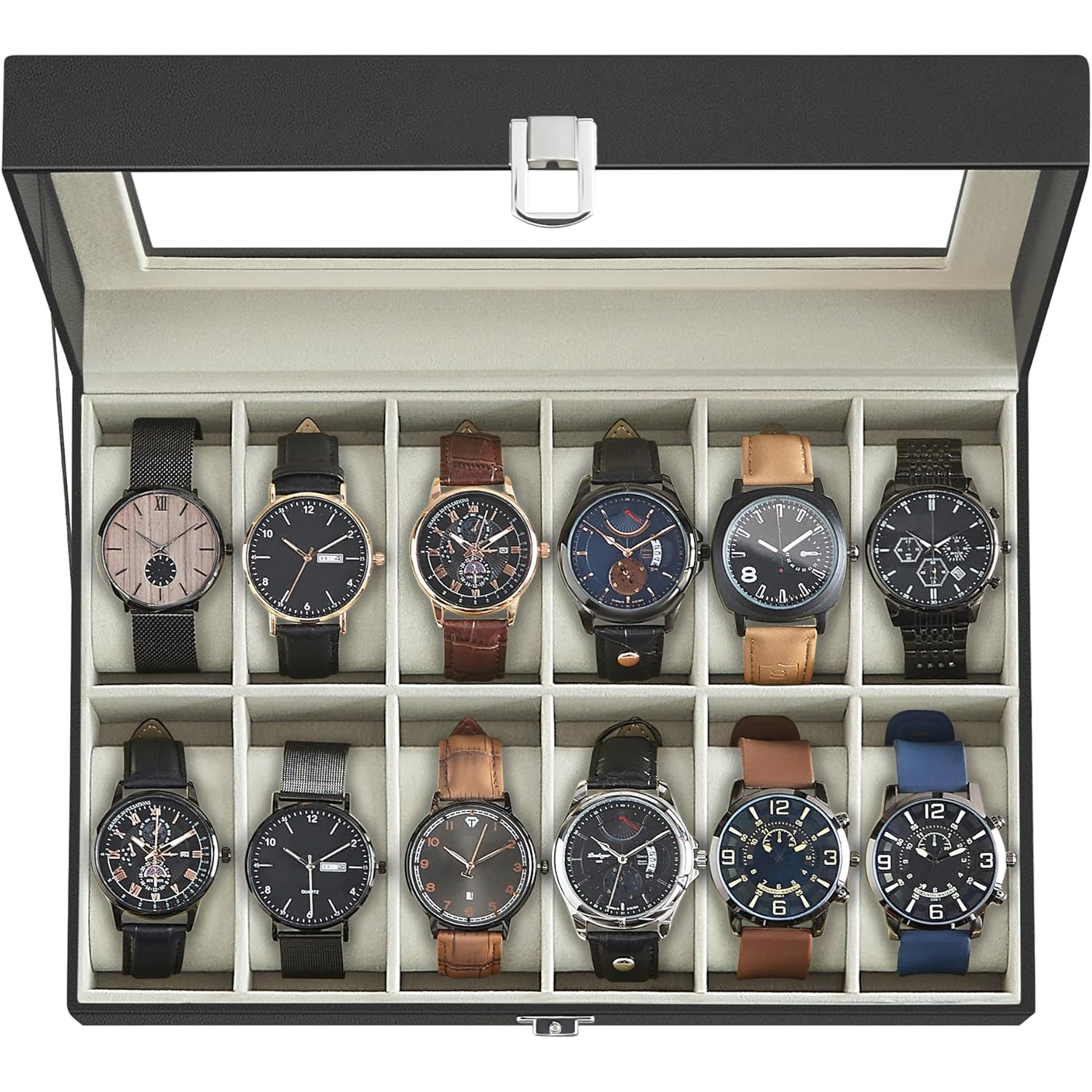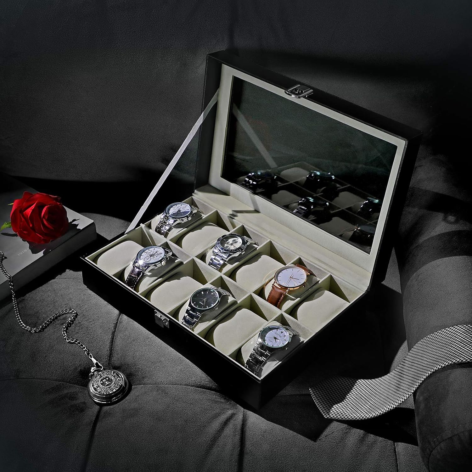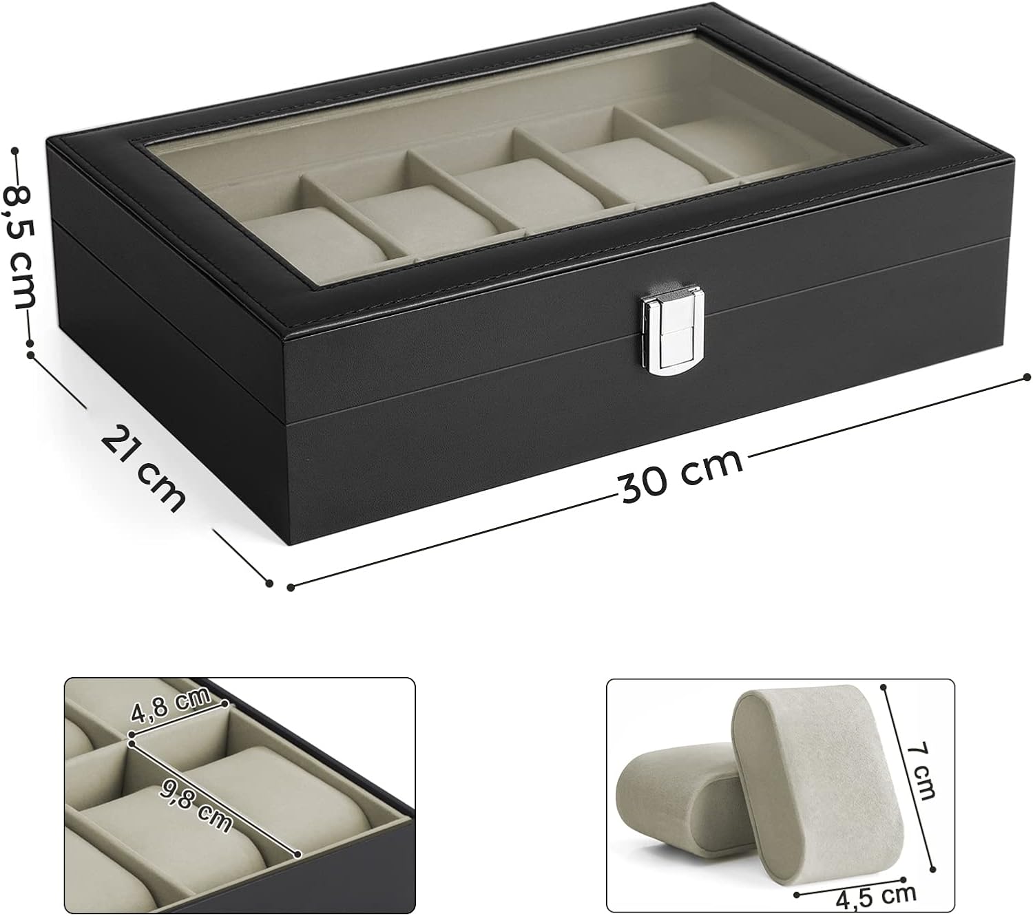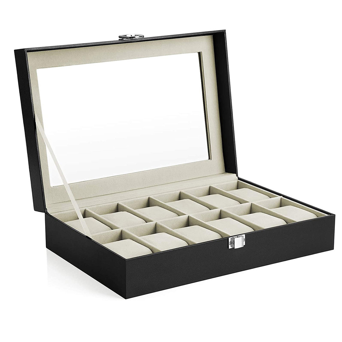 Descriere SONGMICS Cutie depozitare ceasuri 12 compartimente,
