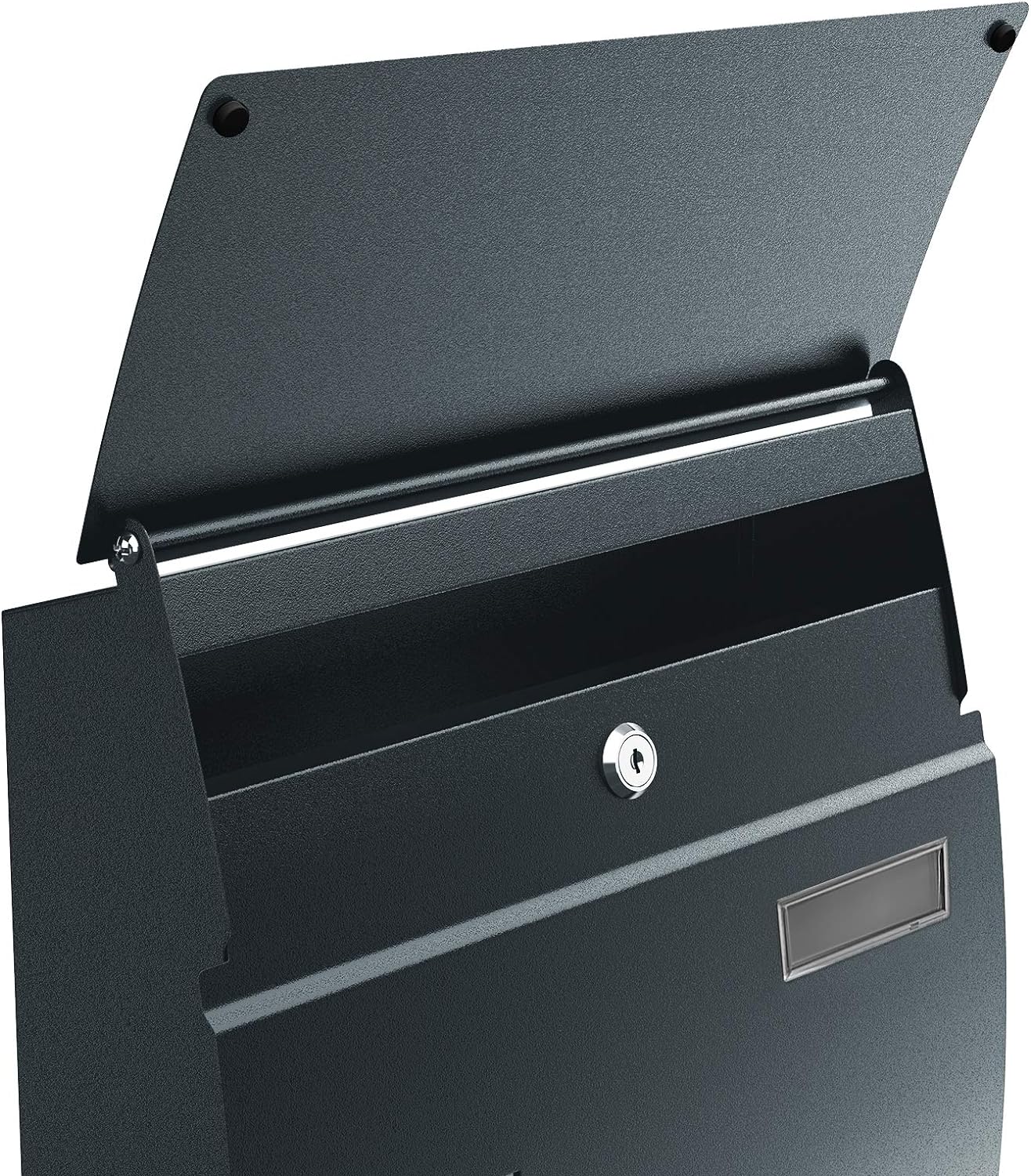 SONGMICS Cutie postala 32x10x45 cm, montaj pe perete, cu 3 ferestre si capac protectie ploaie, otel, gri antracit Household NewTrend