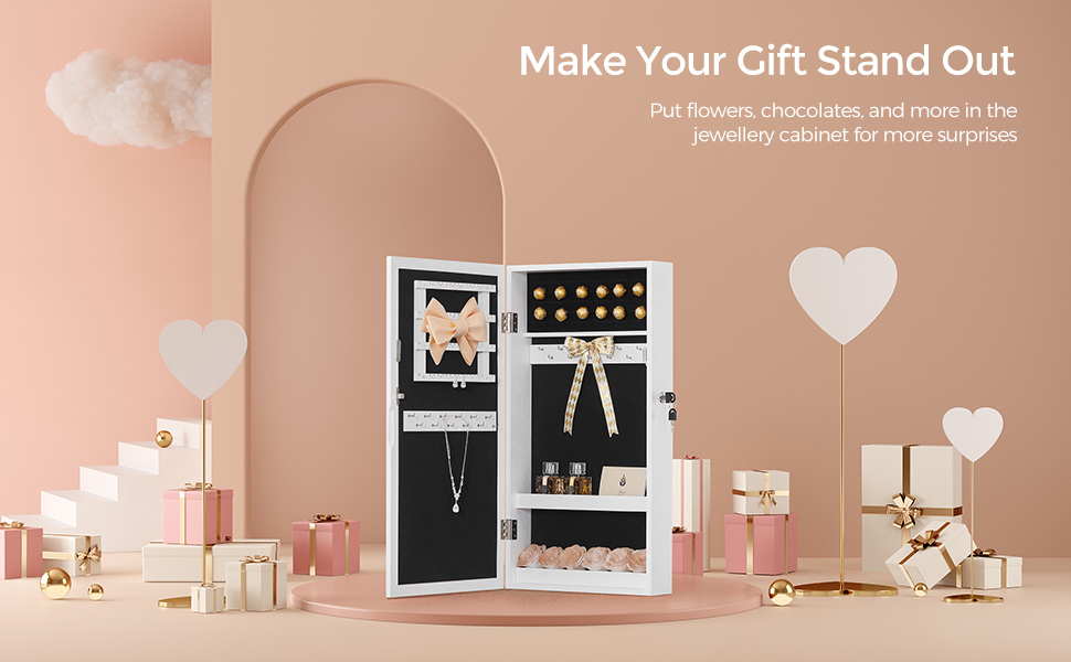 Descriere SONGMICS Dulap bijuterii oglinda, montare perete,