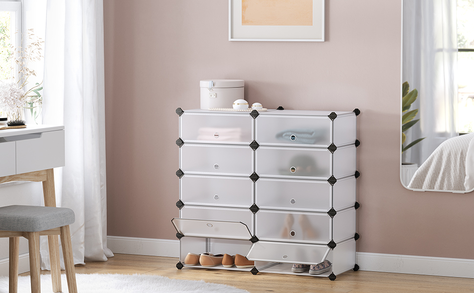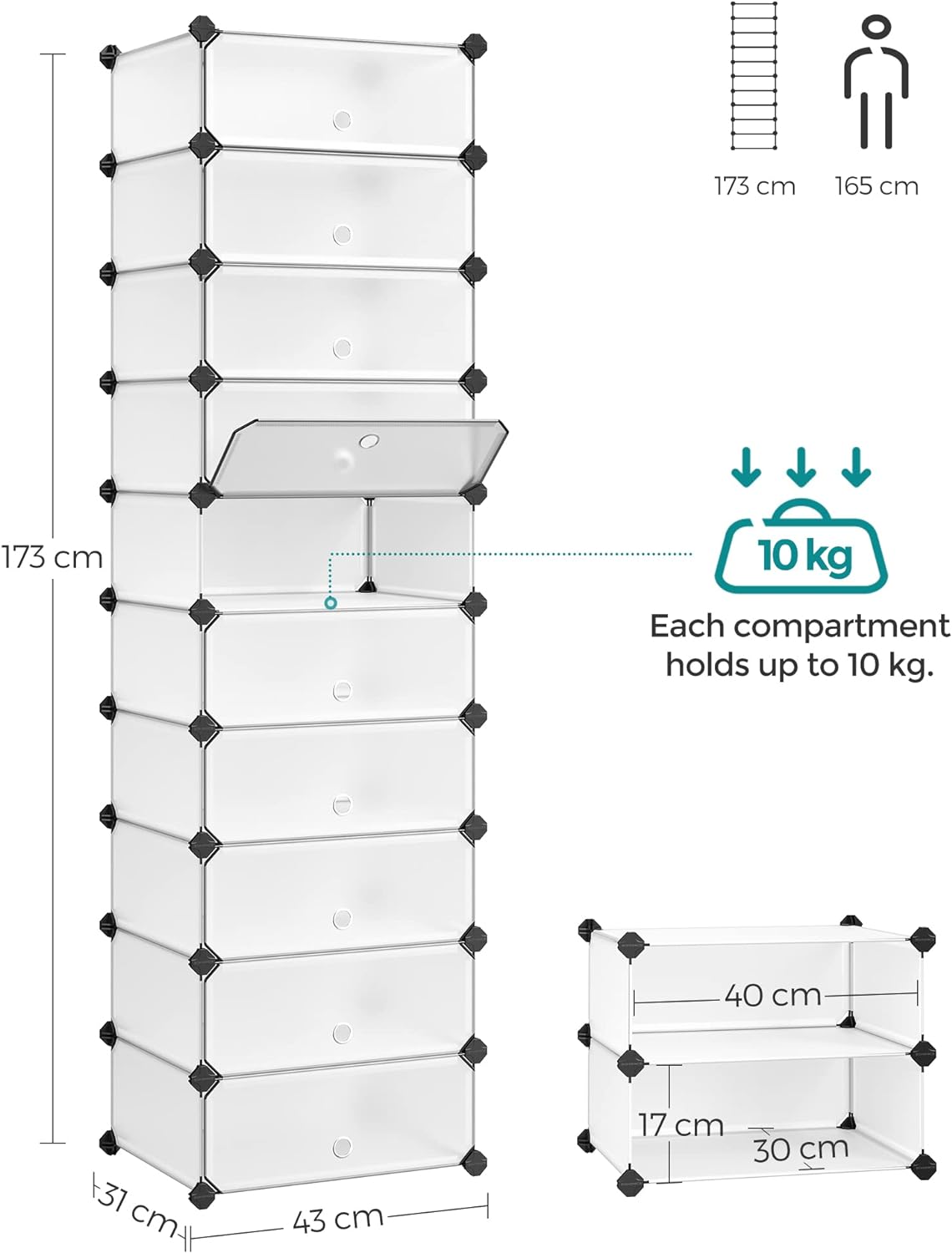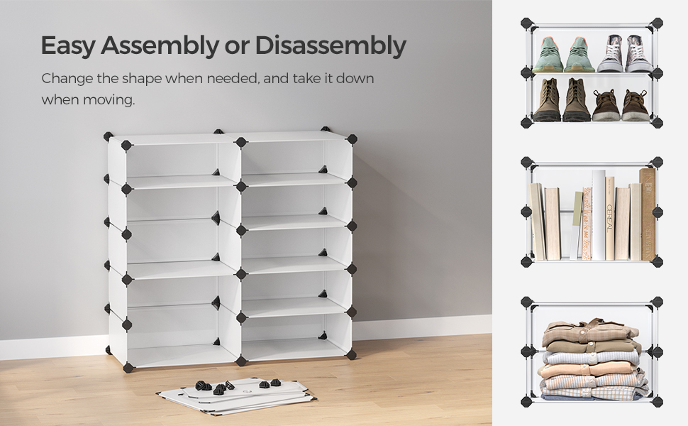 SONGMICS Dulap de depozitare pantofi modular, configurabil cu 10 compartimente, 43x31x173cm, alb Household NewTrend