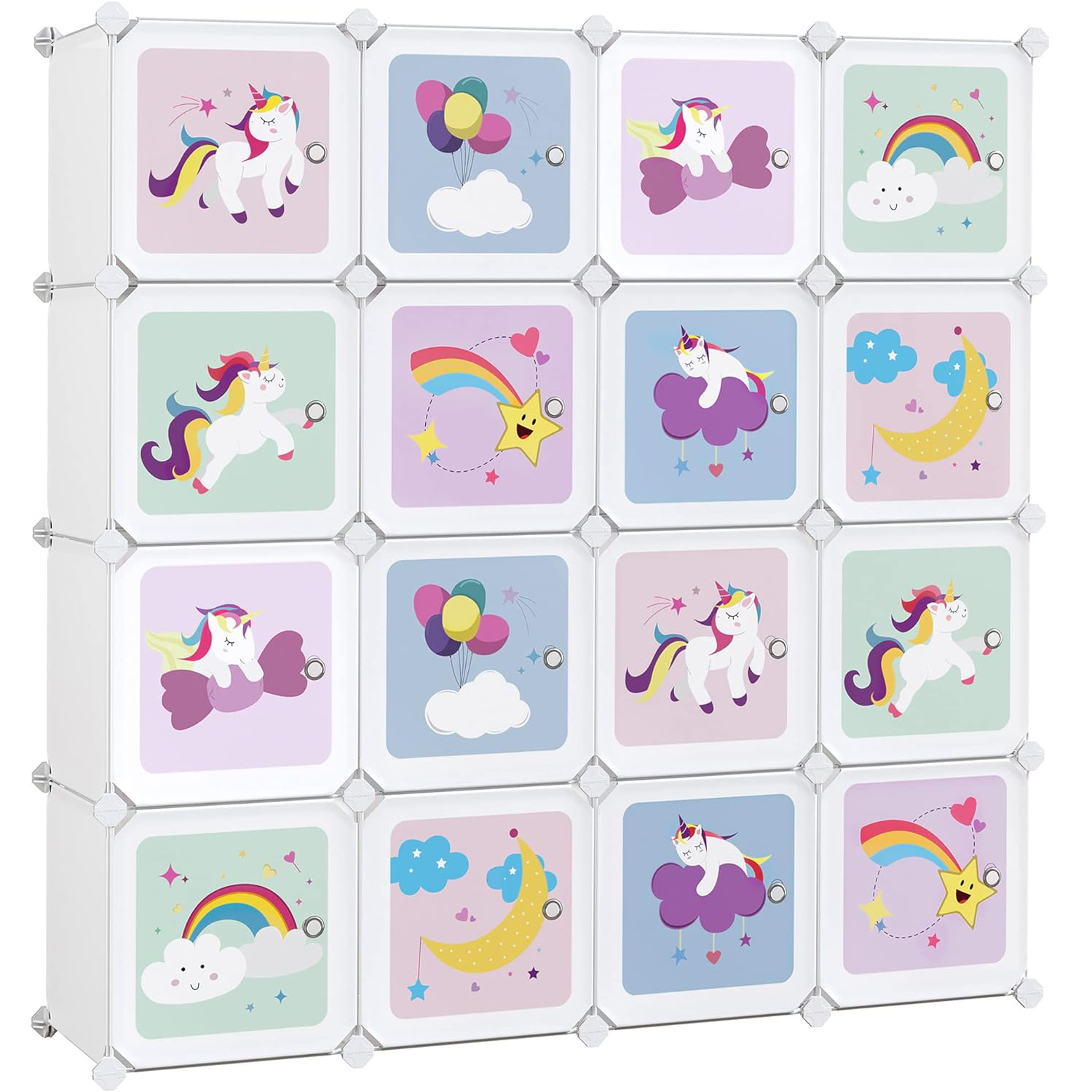 SONGMICS Dulap modular de depozitare jucarii, 16 cuburi cu usi, 123x31x123cm, alb Household NewTrend