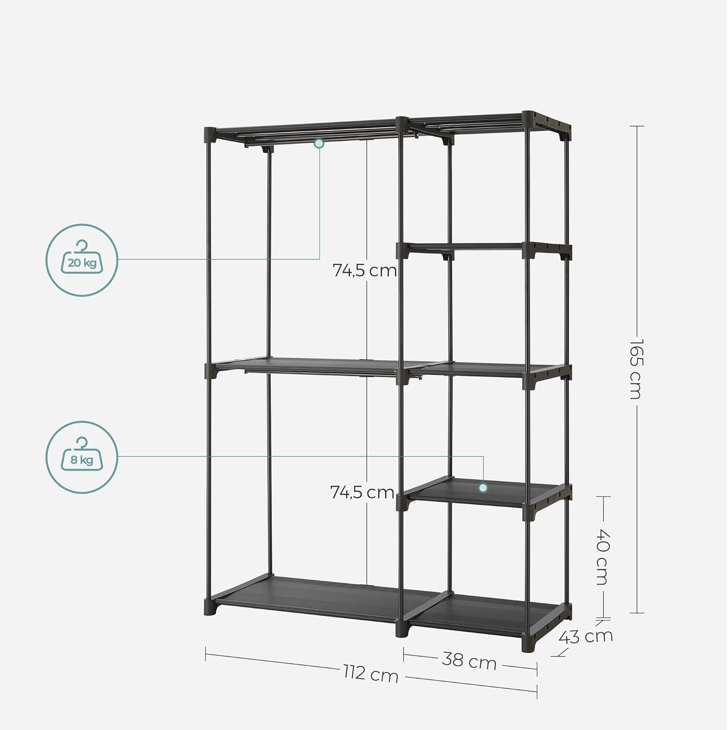 SONGMICS Dulap textil pliabil cu spatiu pentru umerase si rafturi, cadru metalic, 112x43x165 cm, negru Household NewTrend