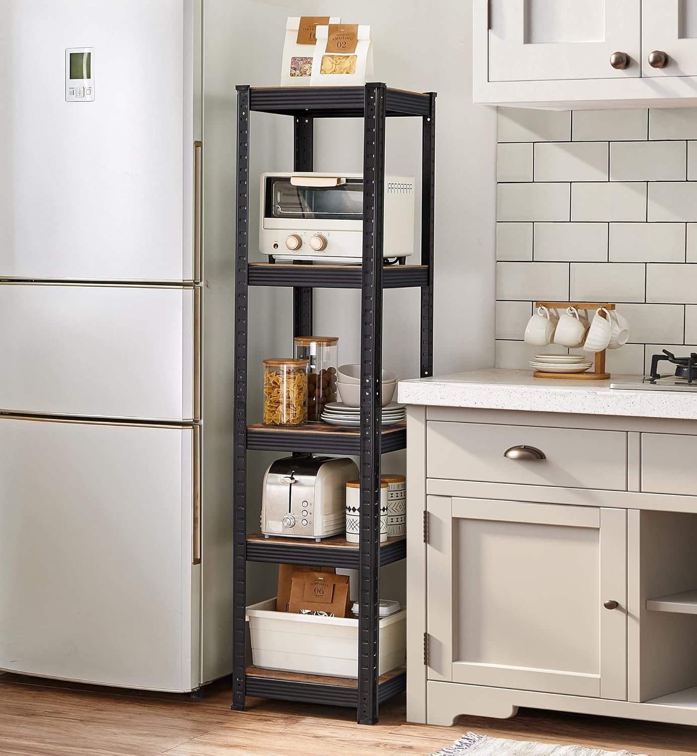 SONGMICS Etajera 5 rafturi ajustabile, structura metalica, stil industrial, MDF, 37x37x150 cm, maro si negru Household NewTrend