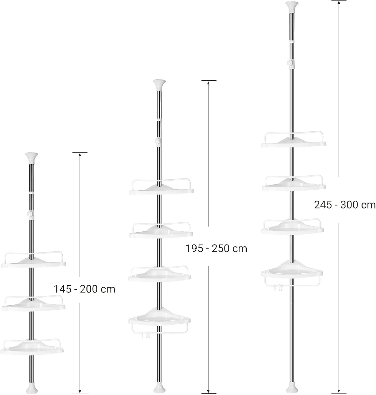 SONGMICS Etajera colt dus, 4 rafturi, inaltime reglabila 95-300 cm, otel si plastic PP, alb Household NewTrend