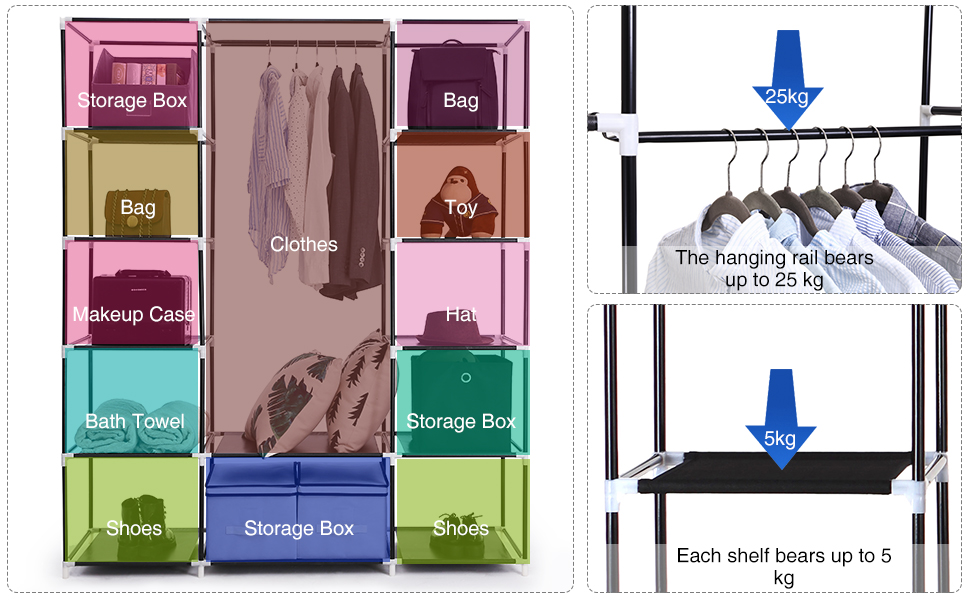 Descriere SONGMICS Garderoba material textil, dulap portabil,