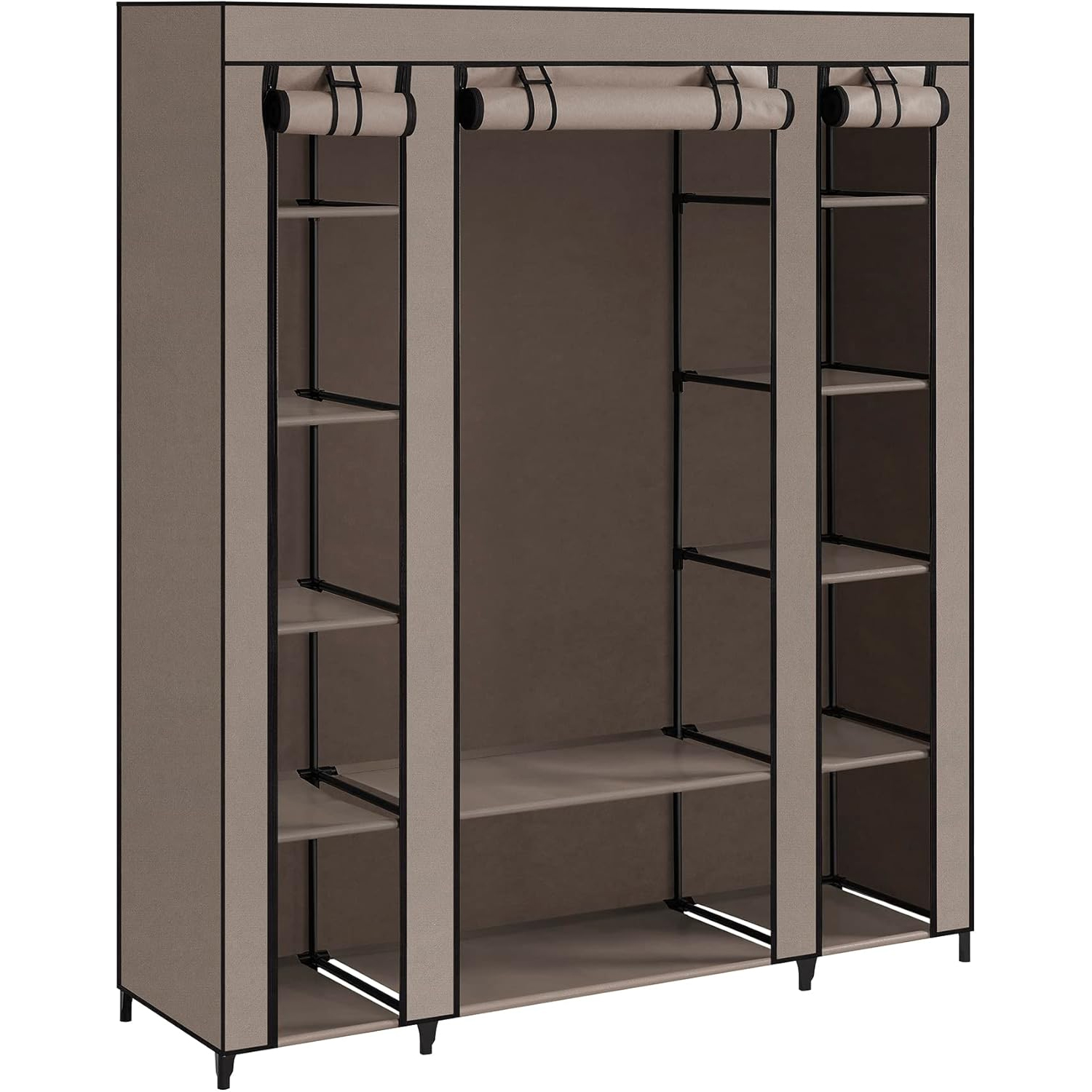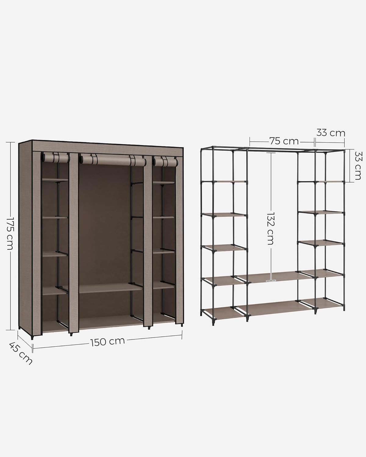 SONGMICS Garderoba din material textil, dulap portabil, cu rafturi si sina de agatat, 150x45x175cm, taupe Household NewTrend