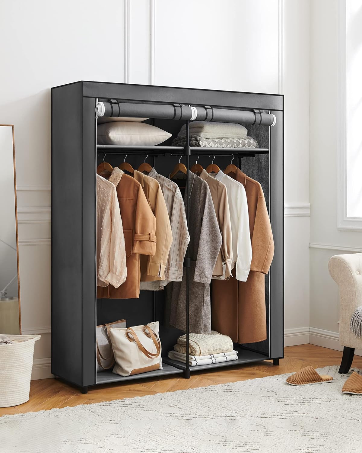 SONGMICS Garderoba pentru depozitarea hainelor, din material textil, cu 2 bare pentru umerase, 43x140x174cm, gri Household NewTrend