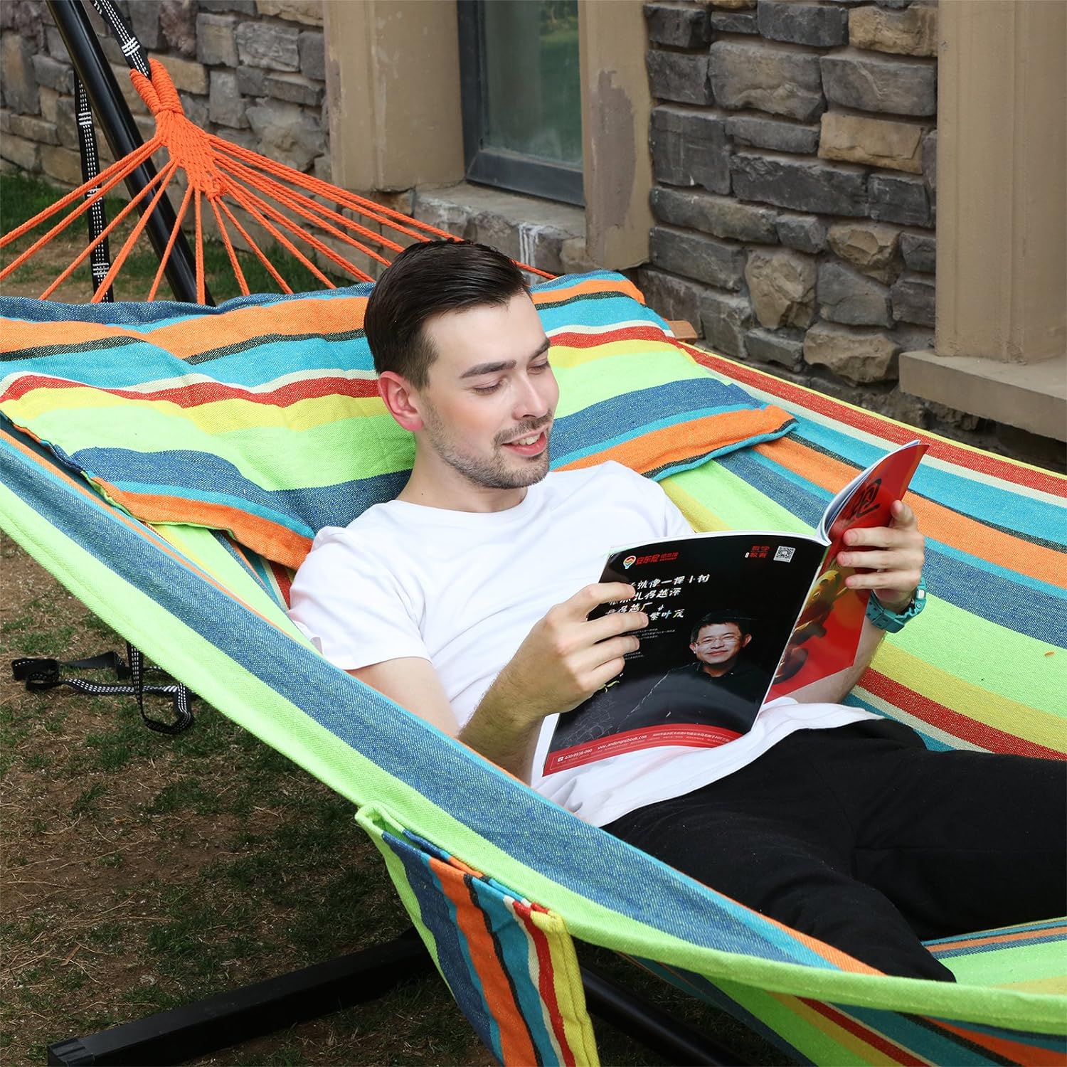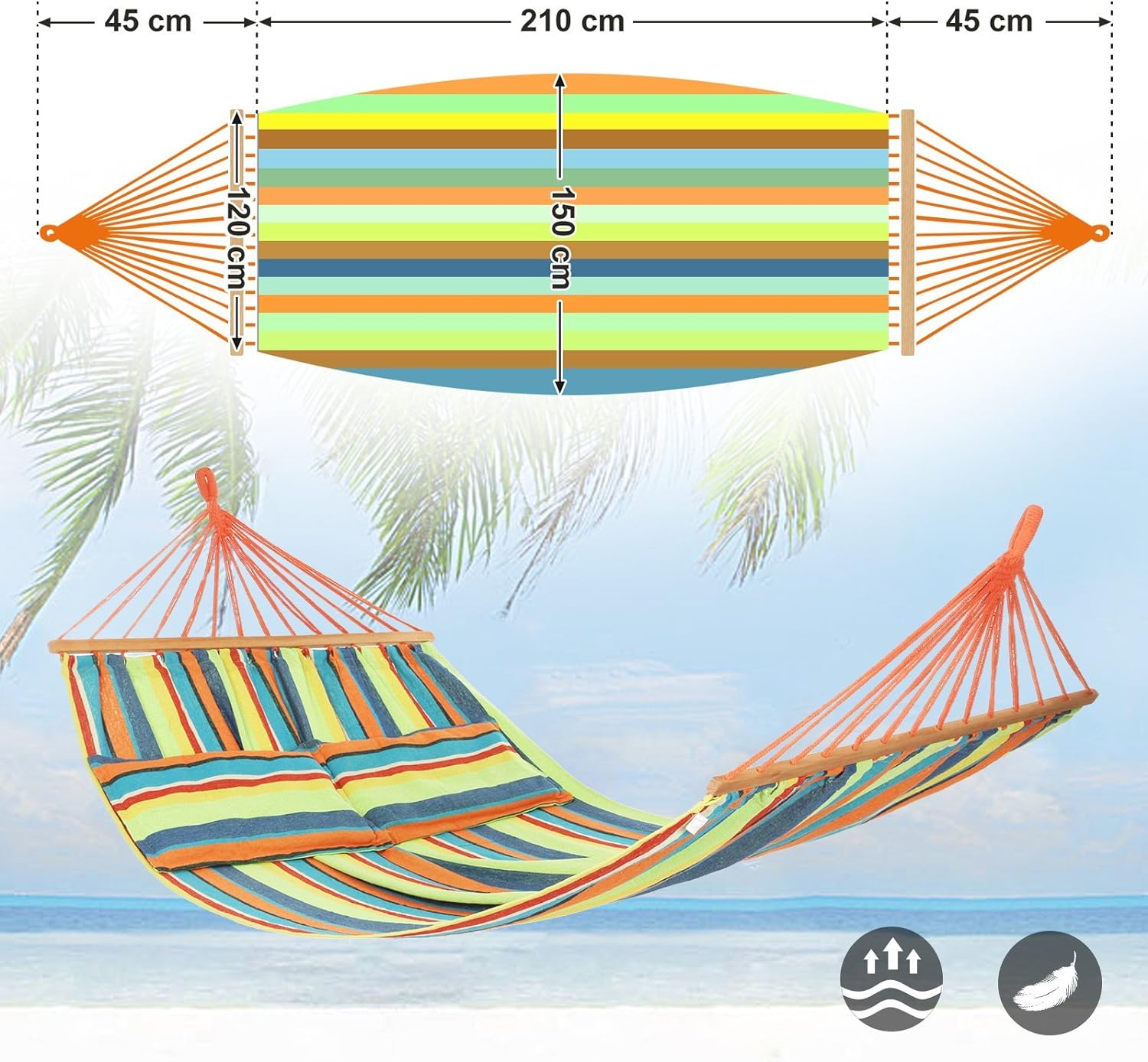 SONGMICS Hamac dublu cu bara lemn, perne incluse, maxim 300 kg, 210x150 cm, multicolor Household NewTrend