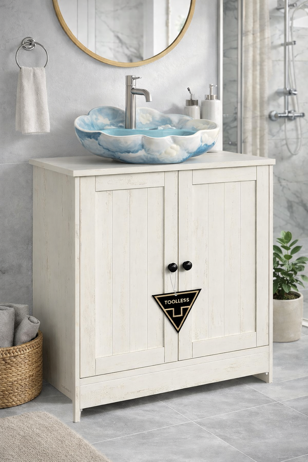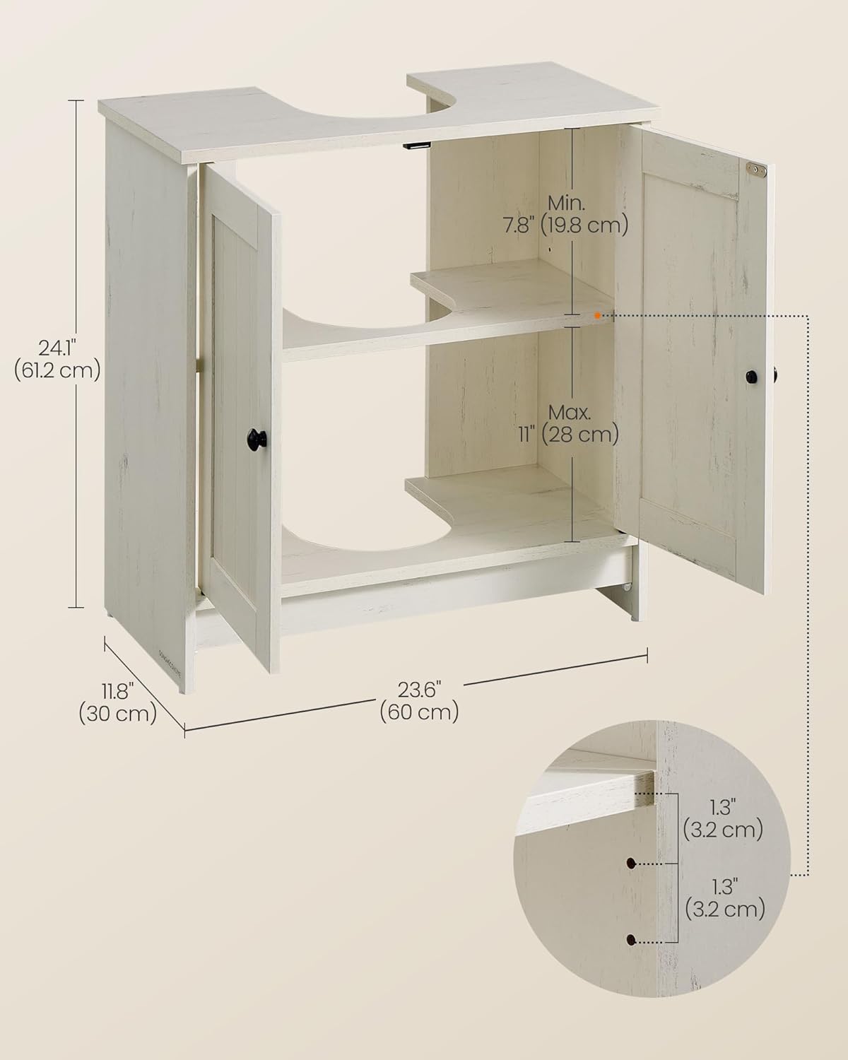 SONGMICS Masca baie pentru chiuveta, suport lavoar, raft reglabil, stil rustic modern, 60x30x61 cm, alb rustic Household NewTrend