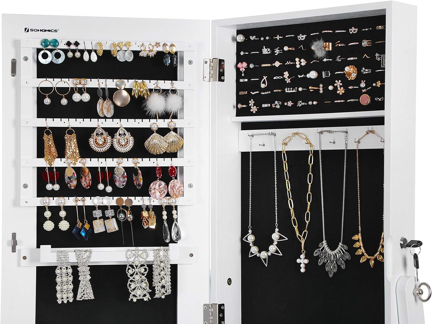 Descriere SONGMICS Oglinda podea suport, MDF, spatiu