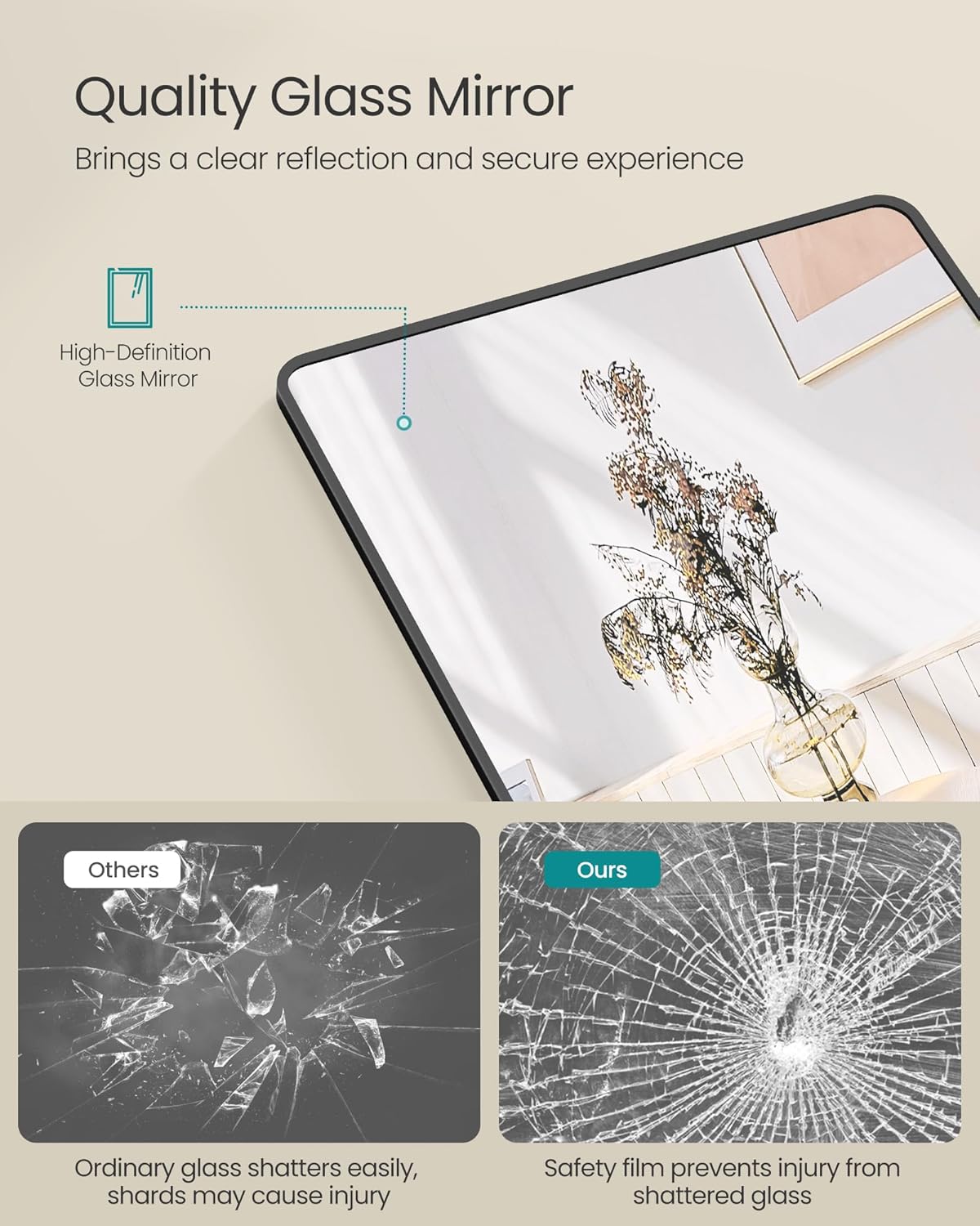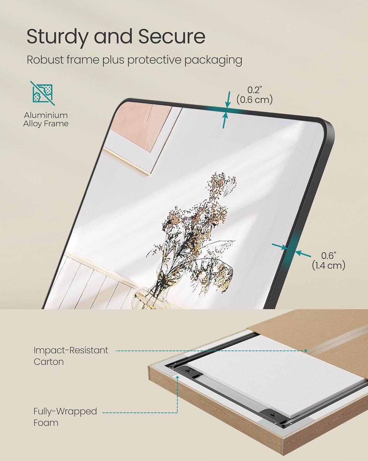 SONGMICS Oglinda podea 160x50 cm, sticla securizata, cadru aluminiu, negru Household NewTrend