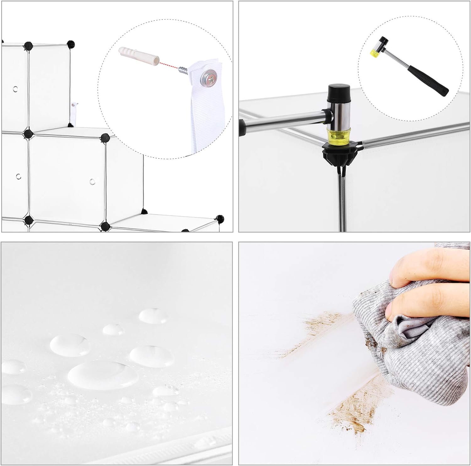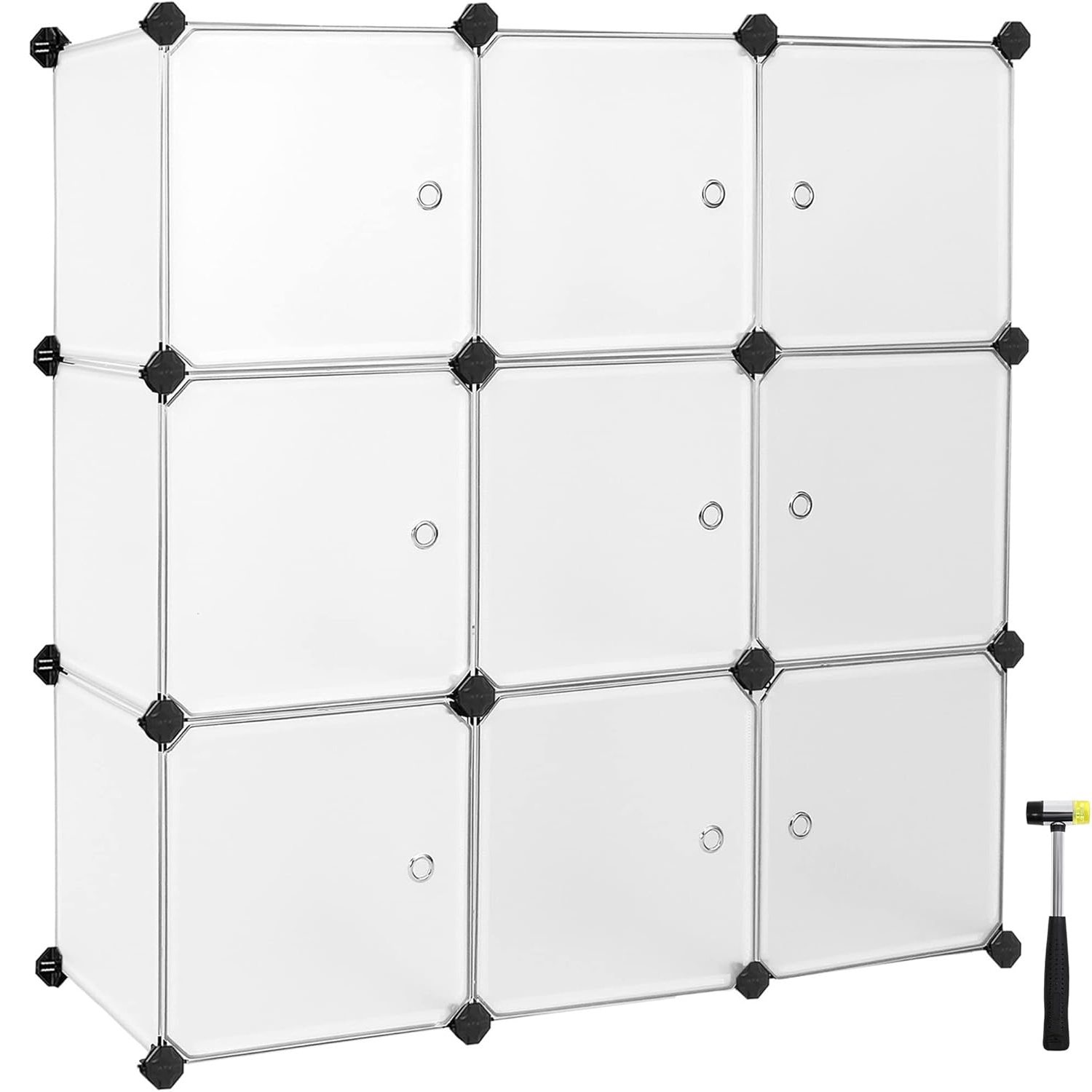 SONGMICS Organizator modular 93x31x93 cm, 9 cuburi cu usi, plastic si cadru metalic, alb Household NewTrend