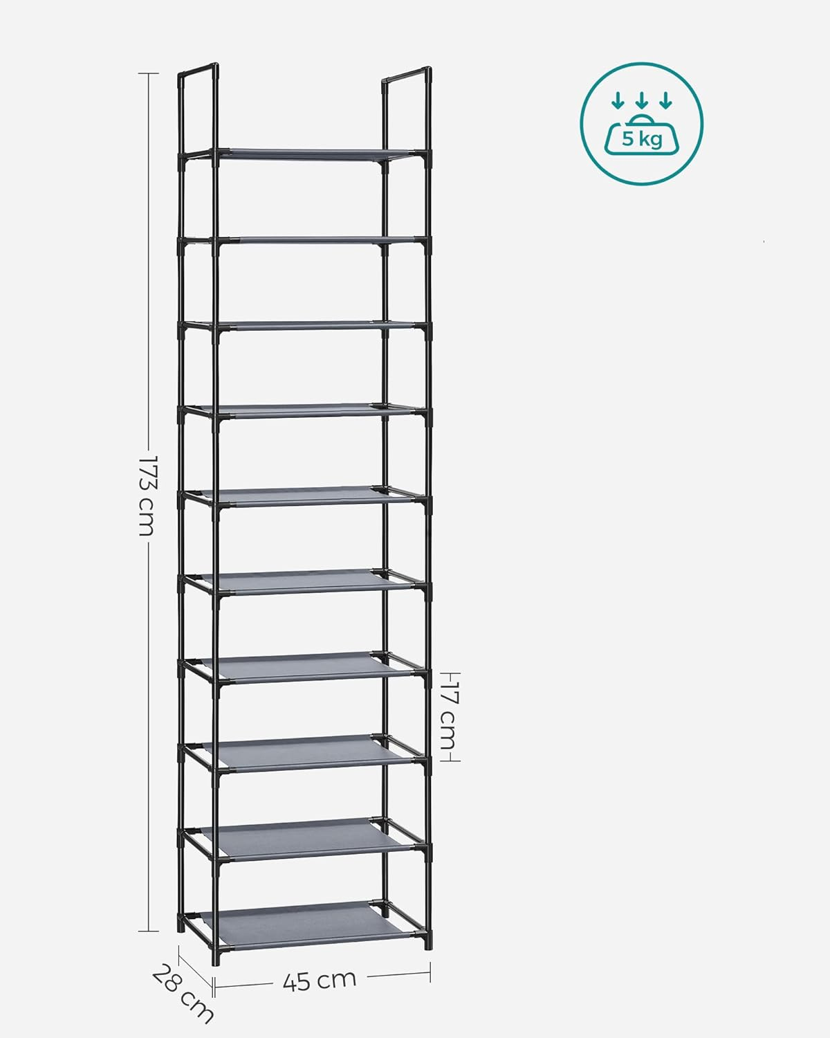 SONGMICS Pantofar cu 10 niveluri, cadru metalic si rafturi textile, 28x45x173 cm, gri Household NewTrend