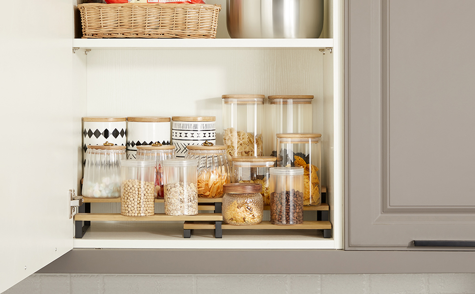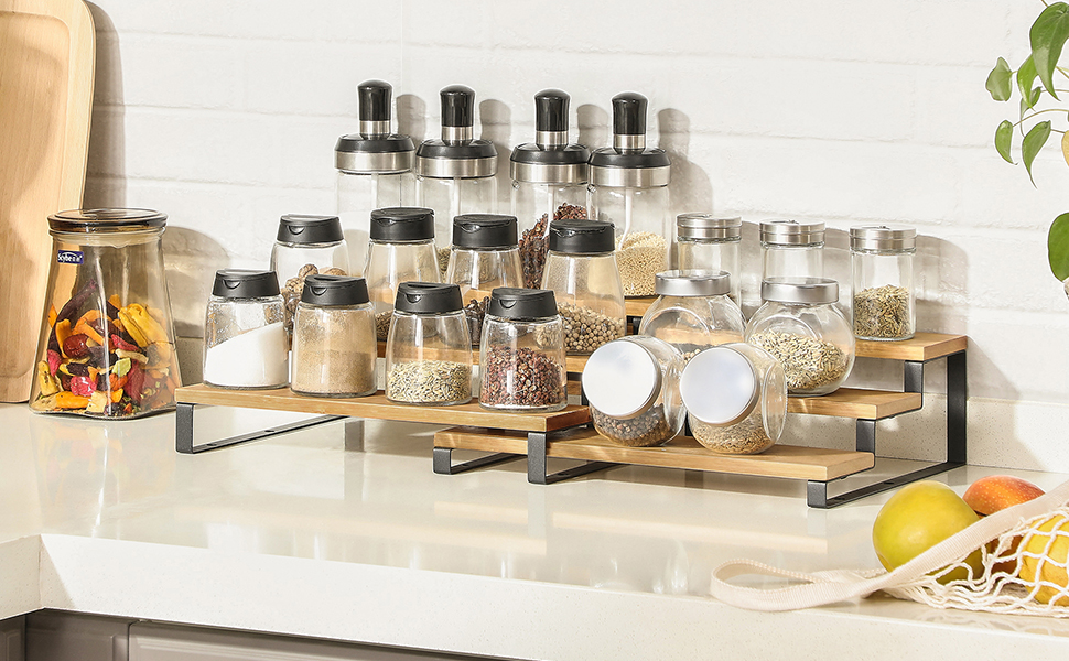 SONGMICS Raft de depozitare extensibil cu 3 nivele, bambus, stivuibil, 32x25x11cm, maro natur Household NewTrend