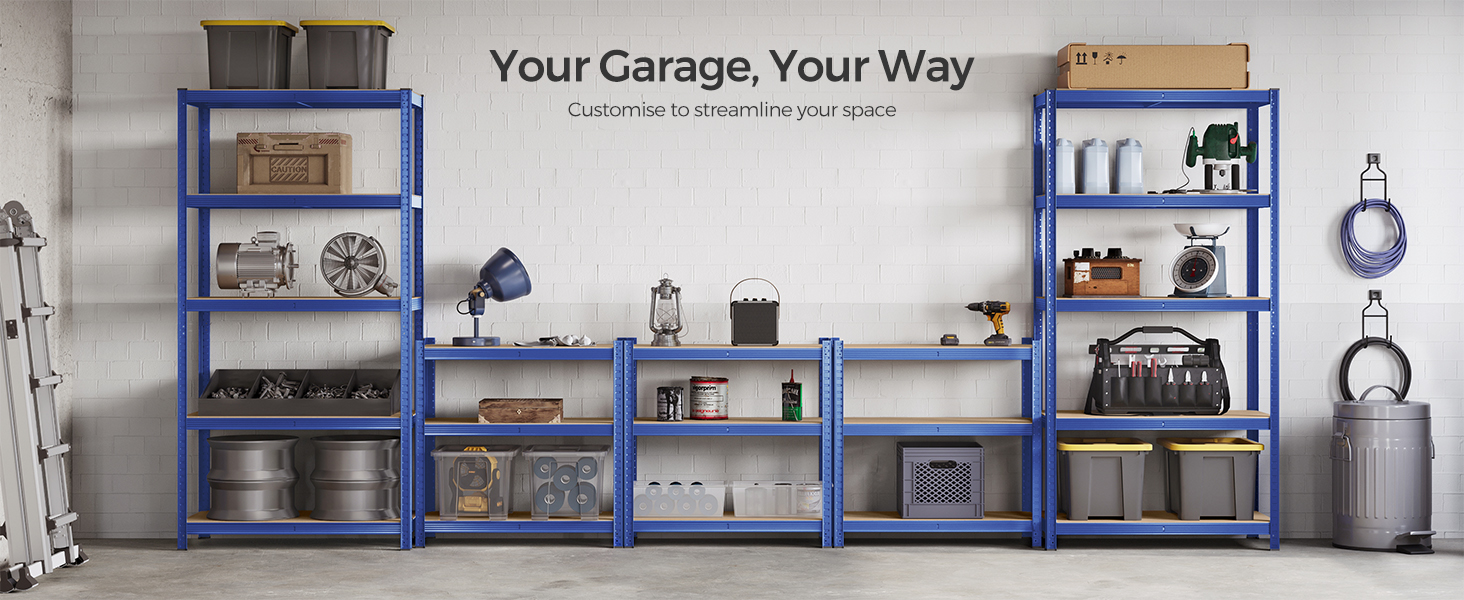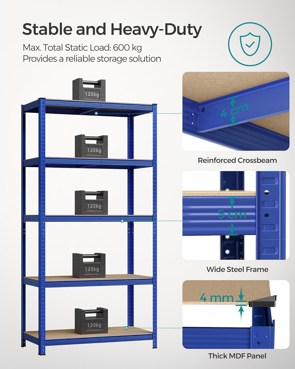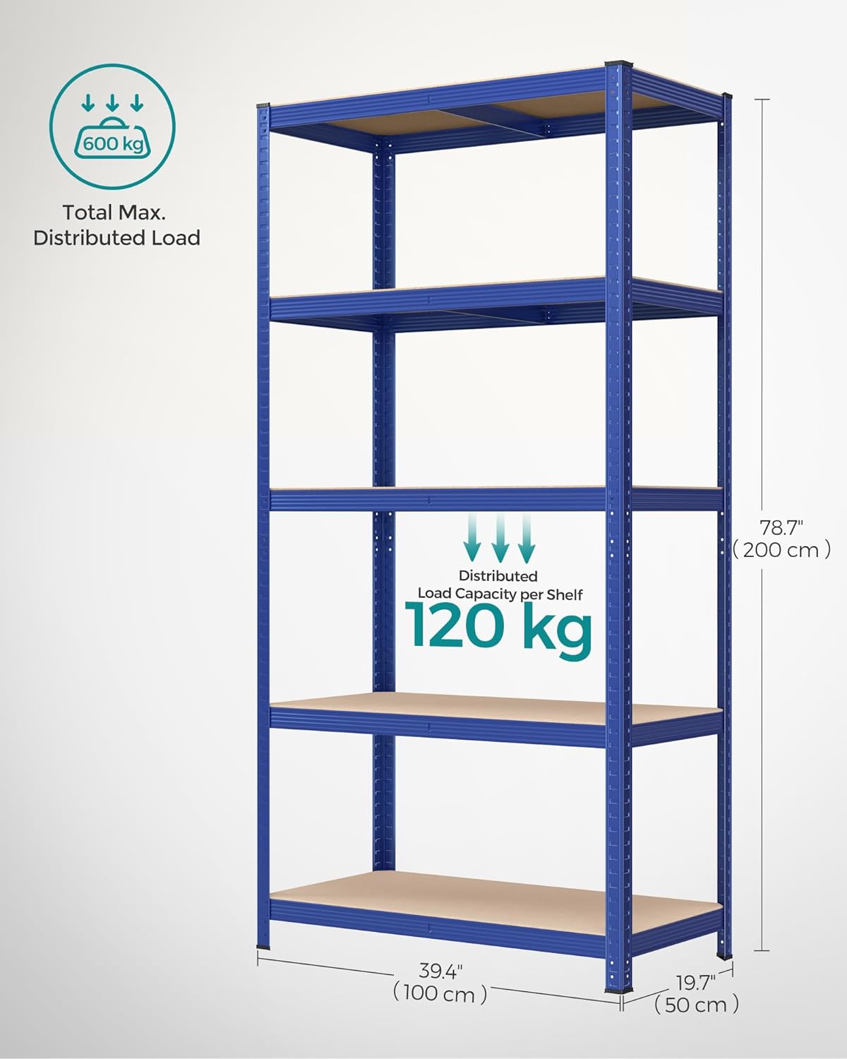 SONGMICS Raft de depozitare metalic, cu rafturi din PAL, 5 polite, max. 600 kg, 200x100x50cm, albastru Household NewTrend