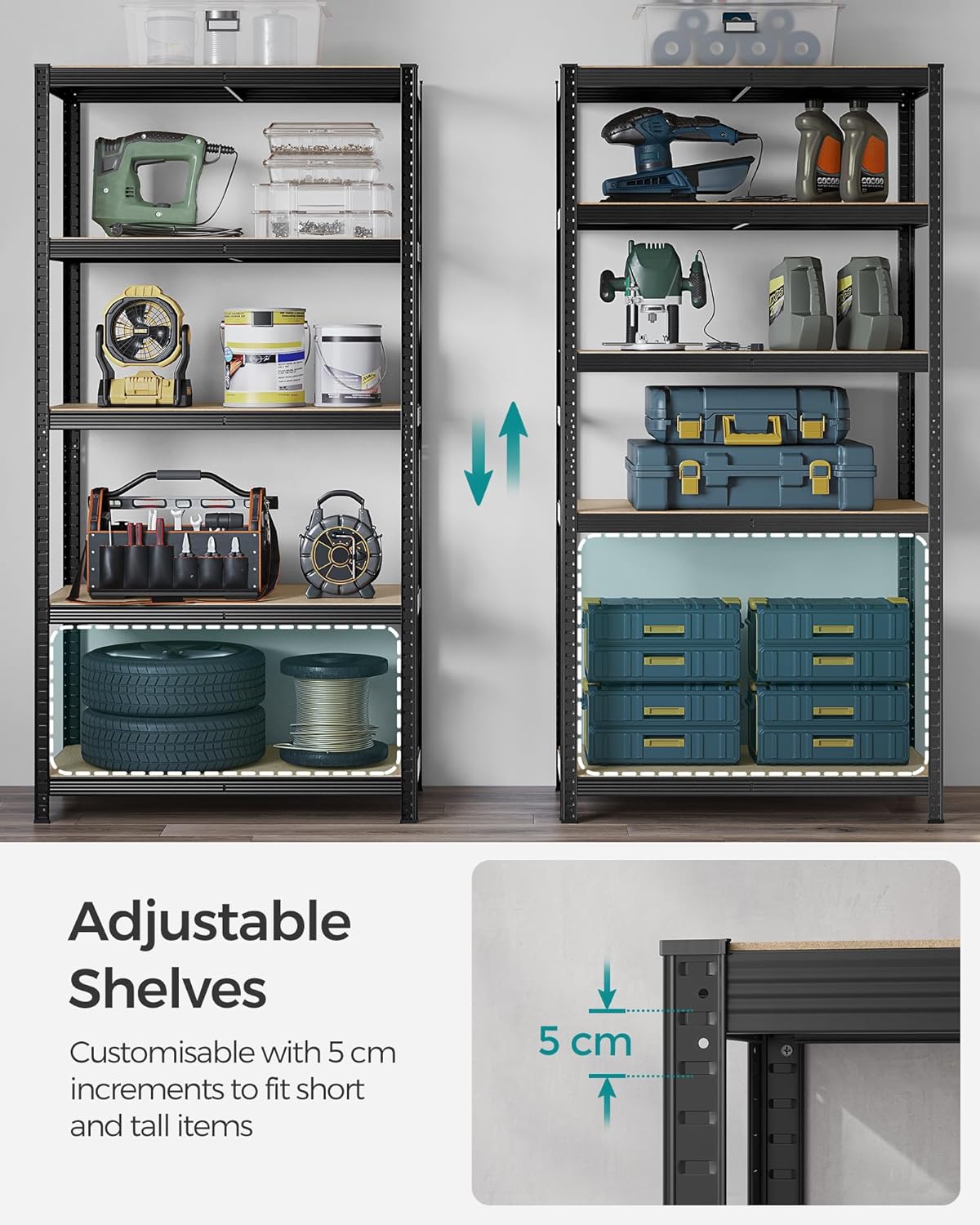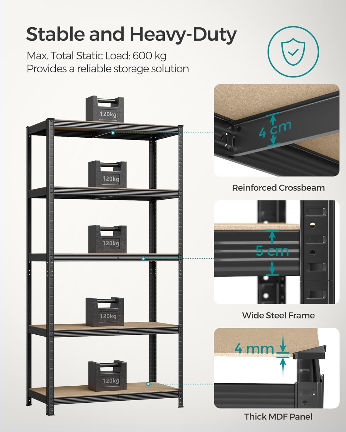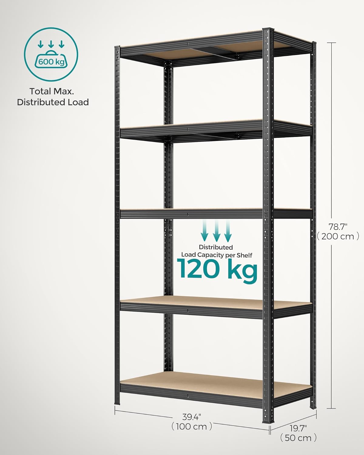 SONGMICS Raft de depozitare metalic, cu rafturi din PAL, 5 polite, max. 600 kg, 200x100x50cm, negru Household NewTrend
