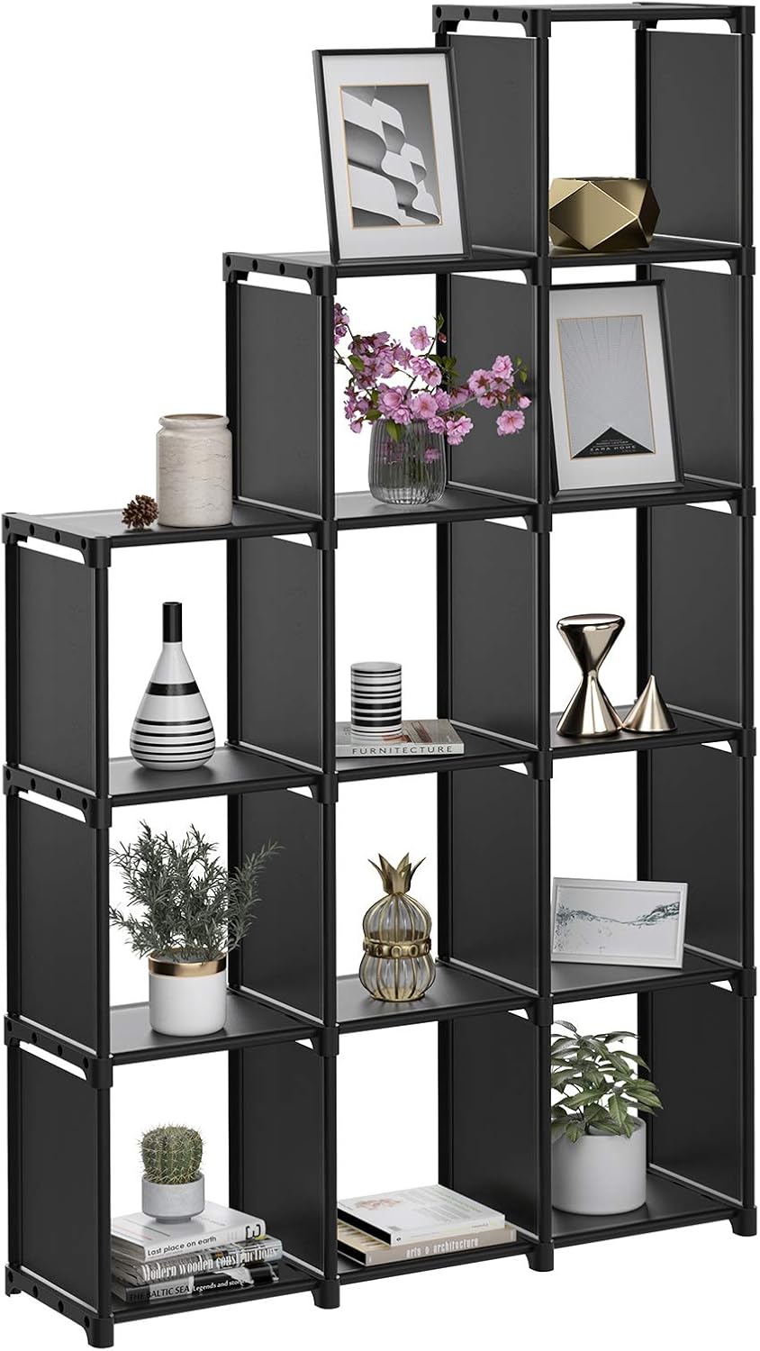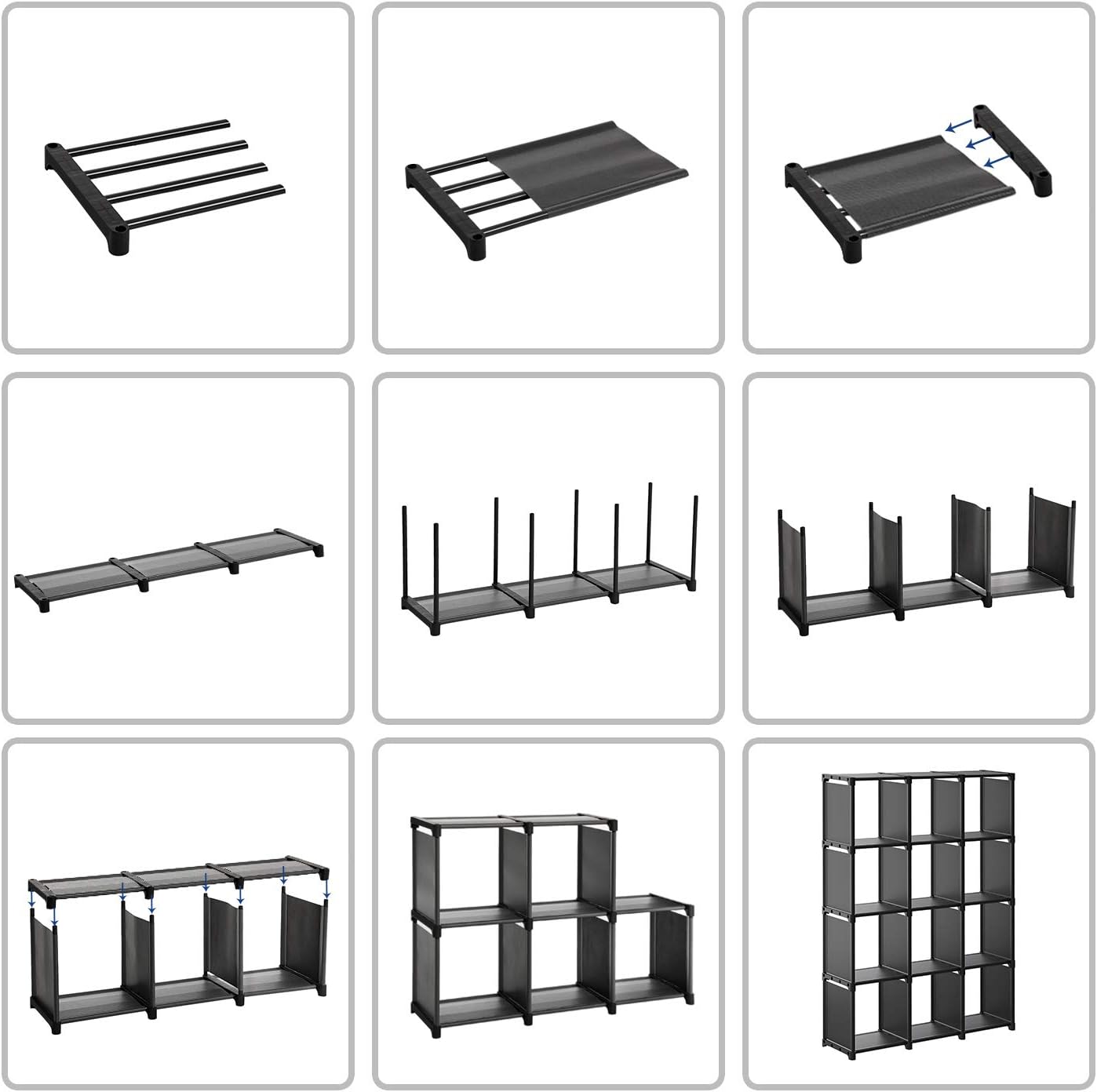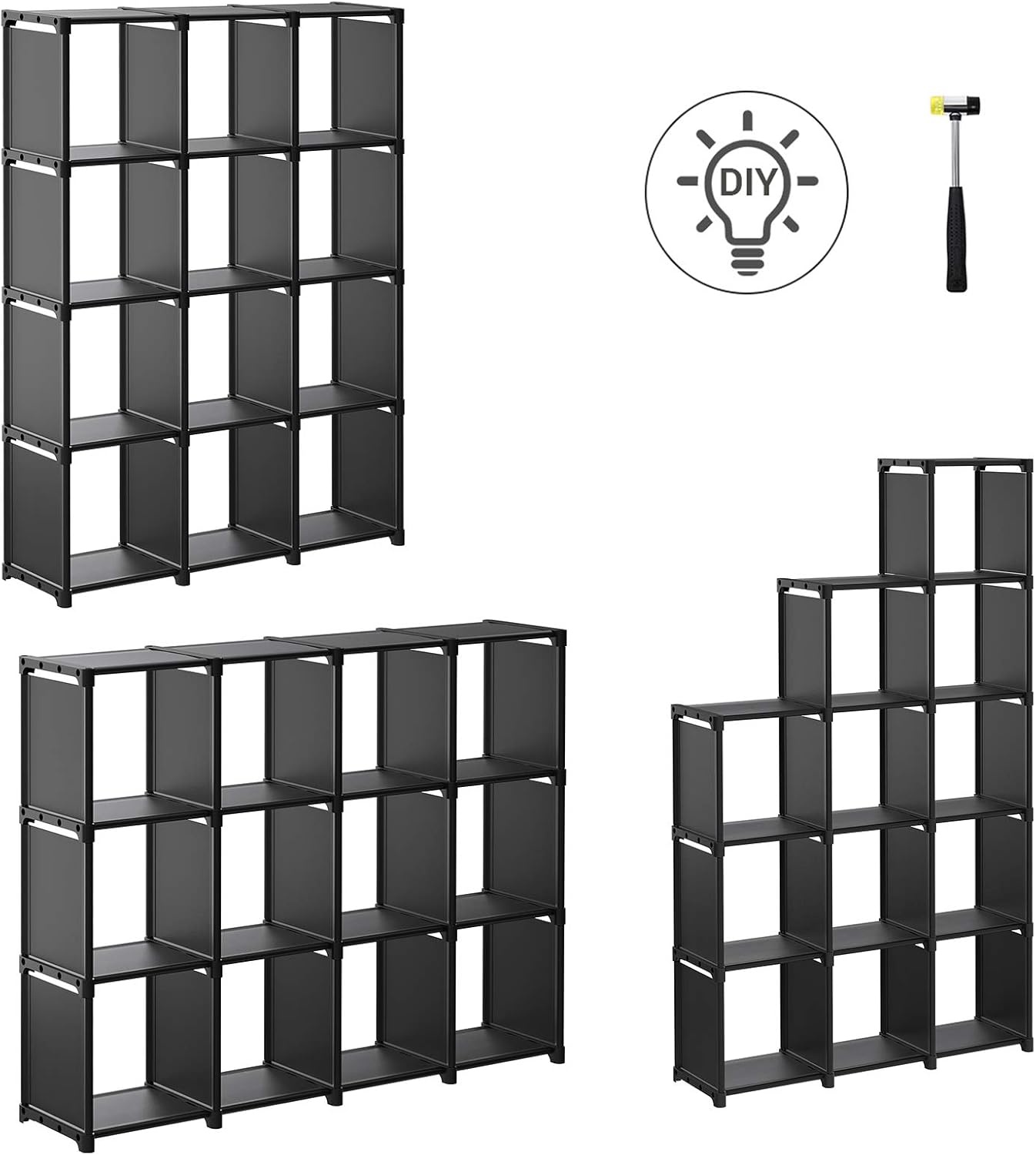SONGMICS Raft de depozitare modular cu 12 cuburi, textil, personalizabil, 30x105x140 cm, negru Household NewTrend
