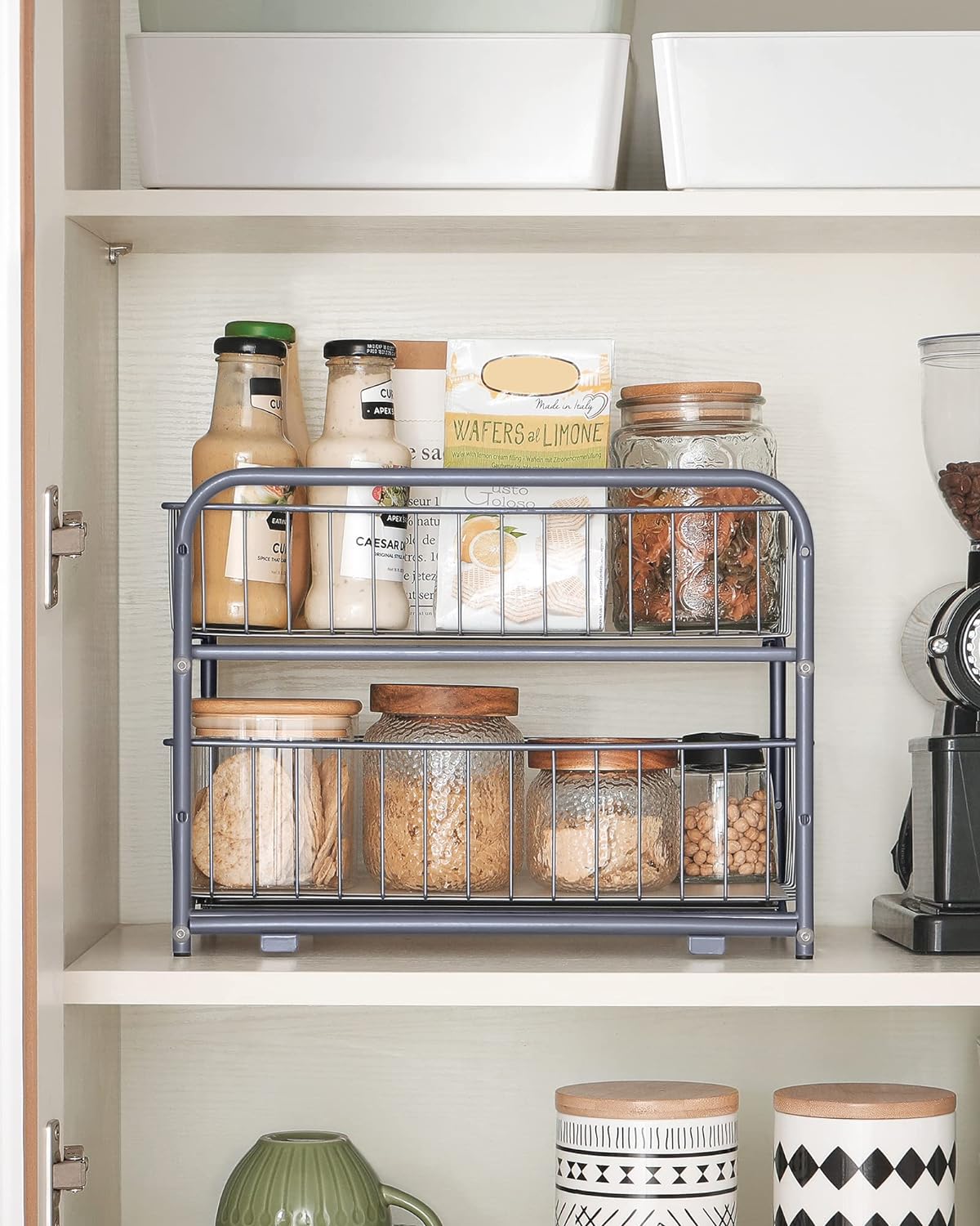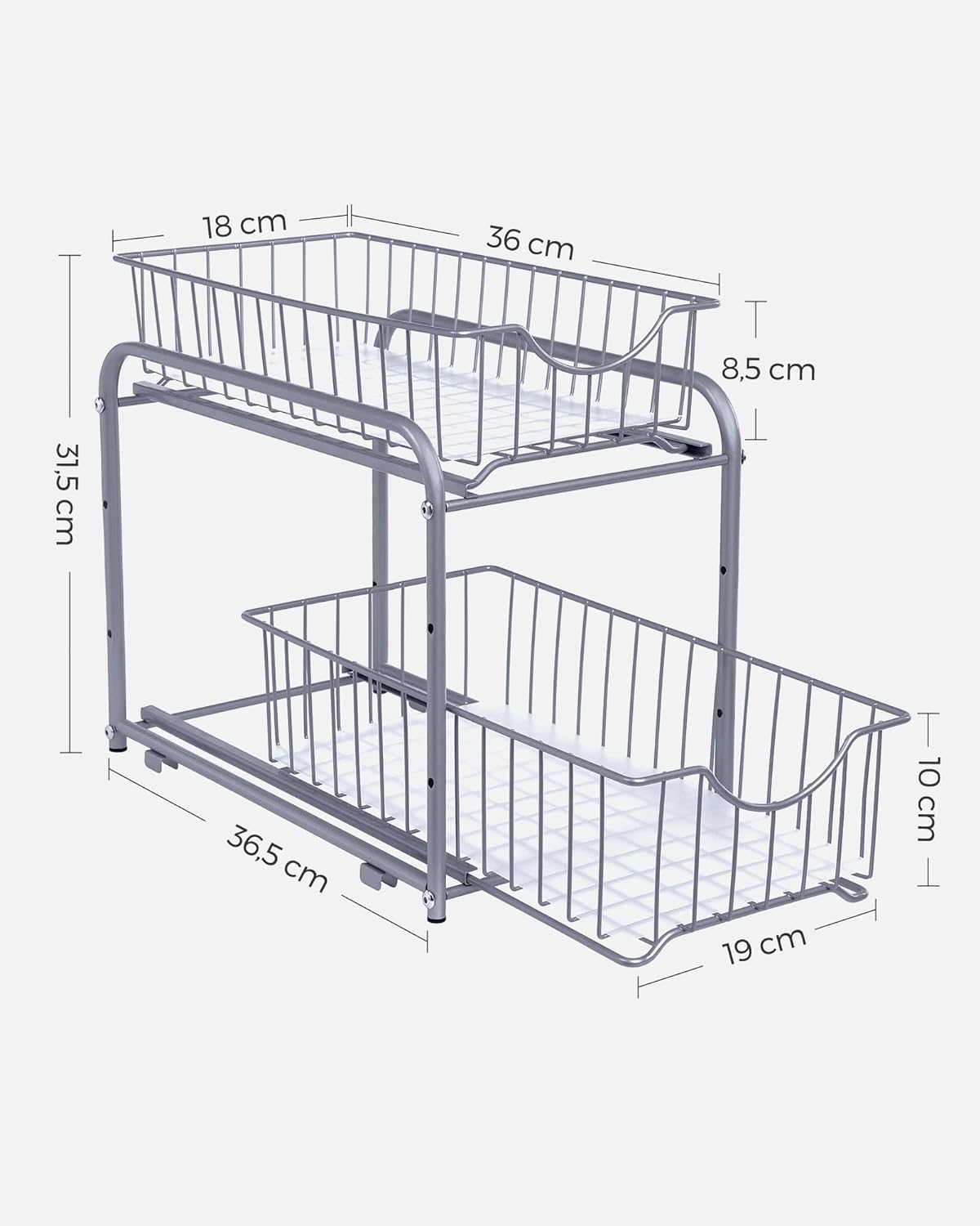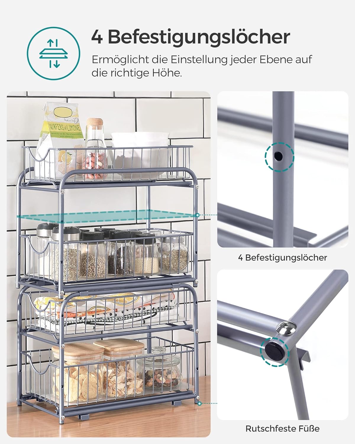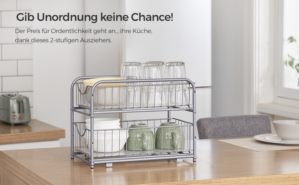 SONGMICS Raft organizator de depozitare cu 2 niveluri, cu sertare glisante, pentru bucatarie sau baie, 21x37x34cm, argintiu Household NewTrend