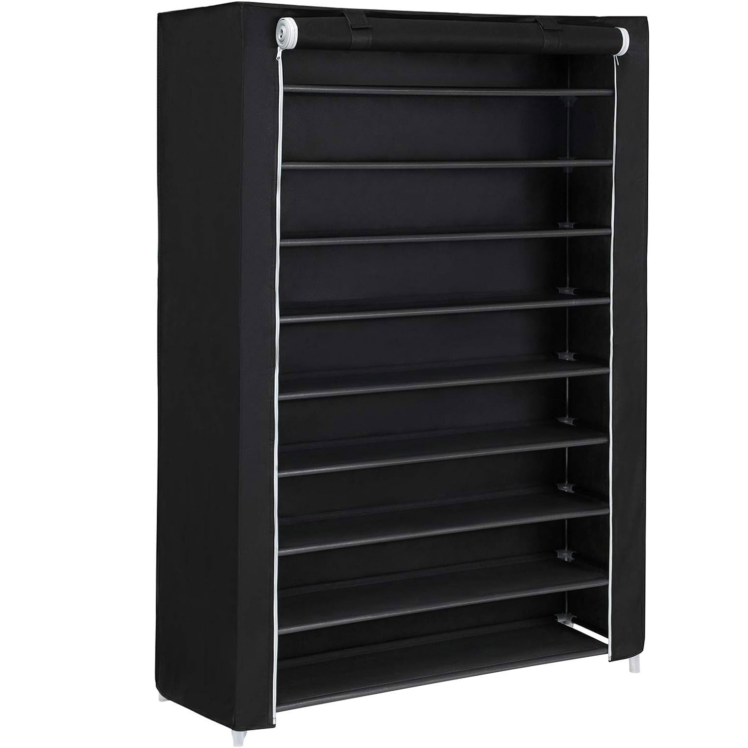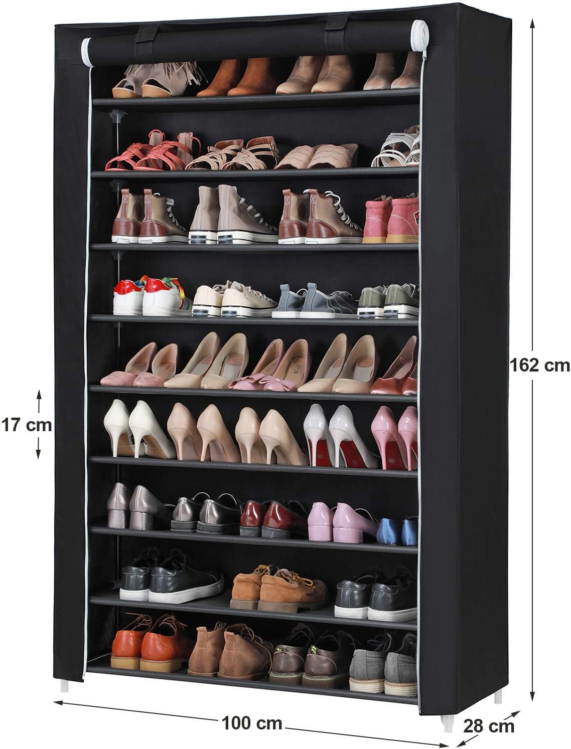 SONGMICS Raft pentru pantofi pe 10 nivele, pana la 54 de perechi pantofi, textil, 100x28x162cm, negru Household NewTrend