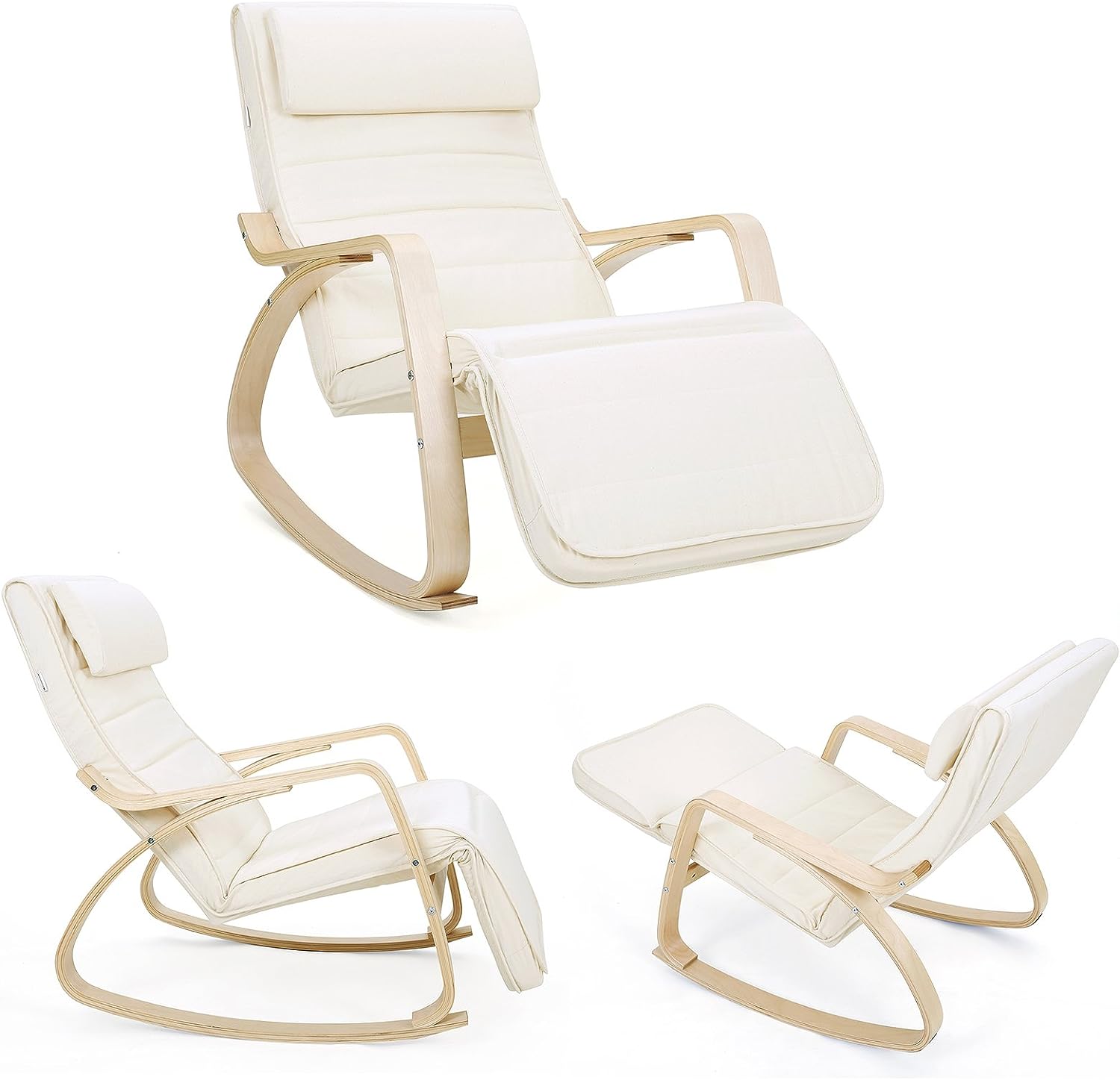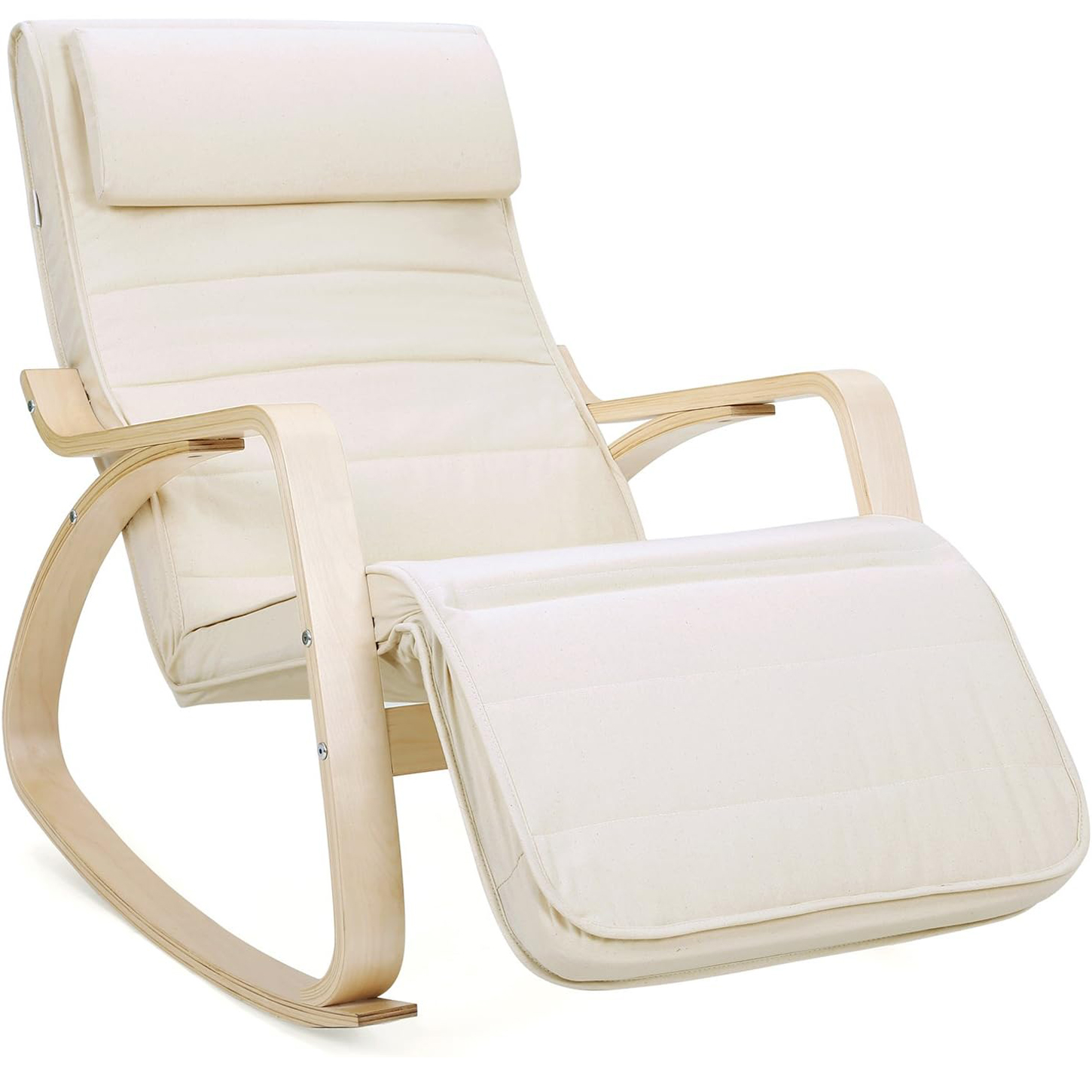 SONGMICS Scaun balansoar din lemn, suport picioare reglabil, maxim 150kg, 55x115x91cm, bej Household NewTrend