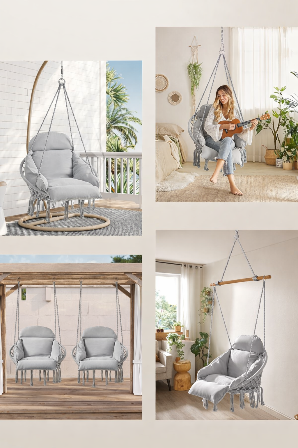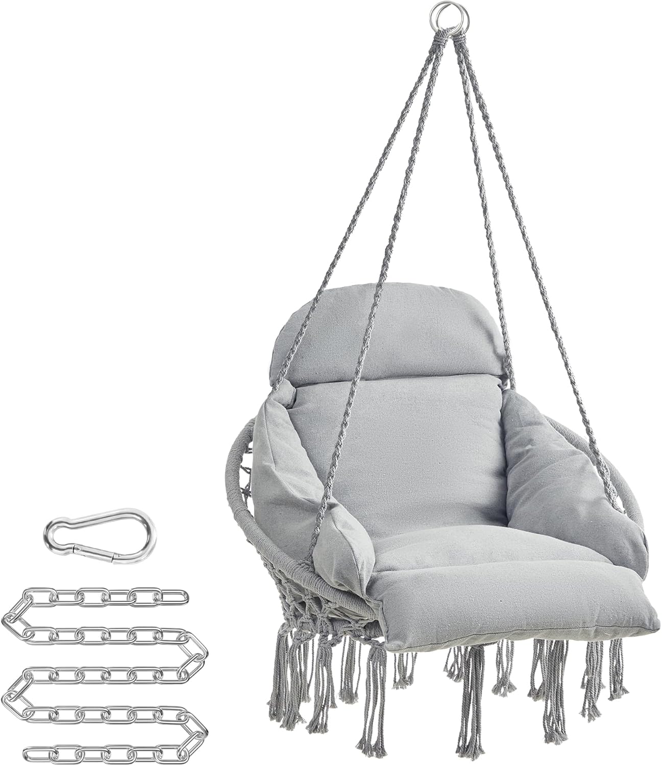 SONGMICS Scaun suspendat tip hamac cu perna groasa, stil scandinav, cadru metalic, 120 kg, gri deschis Household NewTrend