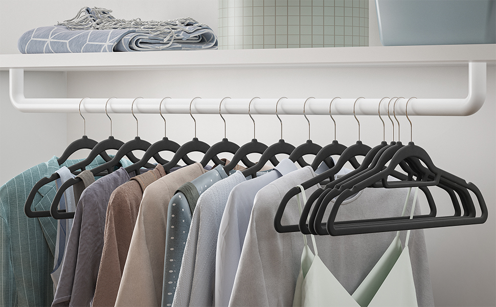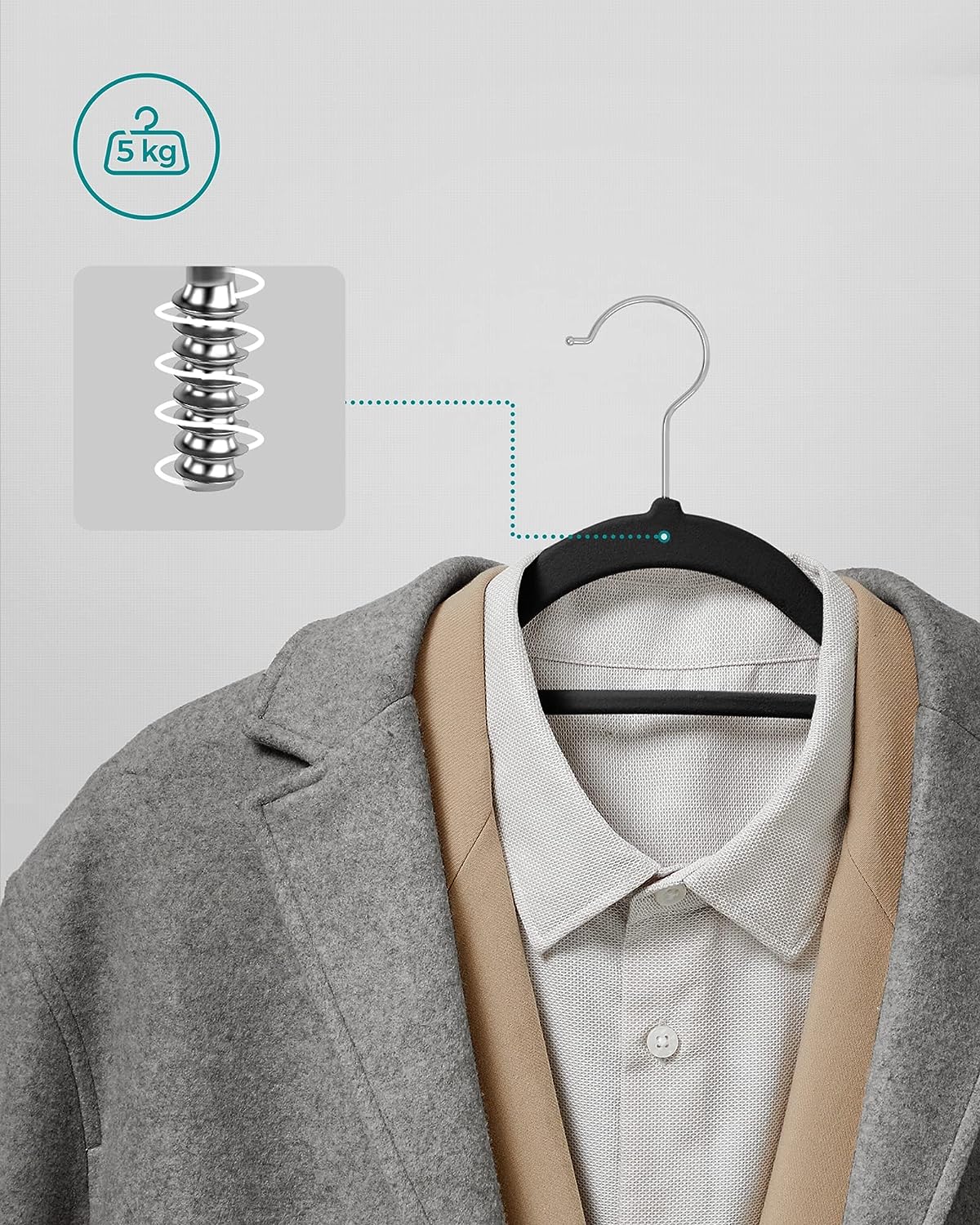 SONGMICS Set de 20 de umerase pentru haine, anti-alunecare cu catifea, bara de cravata si carlig pivotant, 43,5 cm, negru Household NewTrend