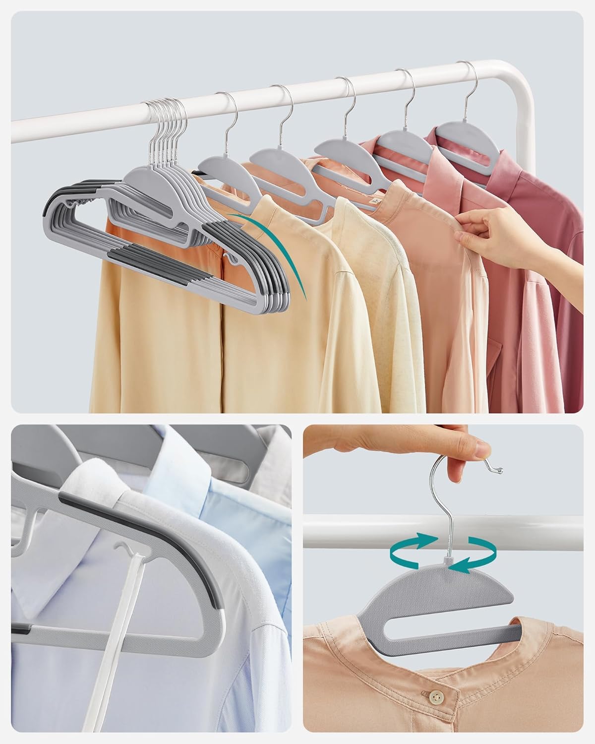 SONGMICS Set de 50 de umerase pentru haine, anti alunecare, bara de cravata si carlig pivotant, 42 cm, gri Household NewTrend