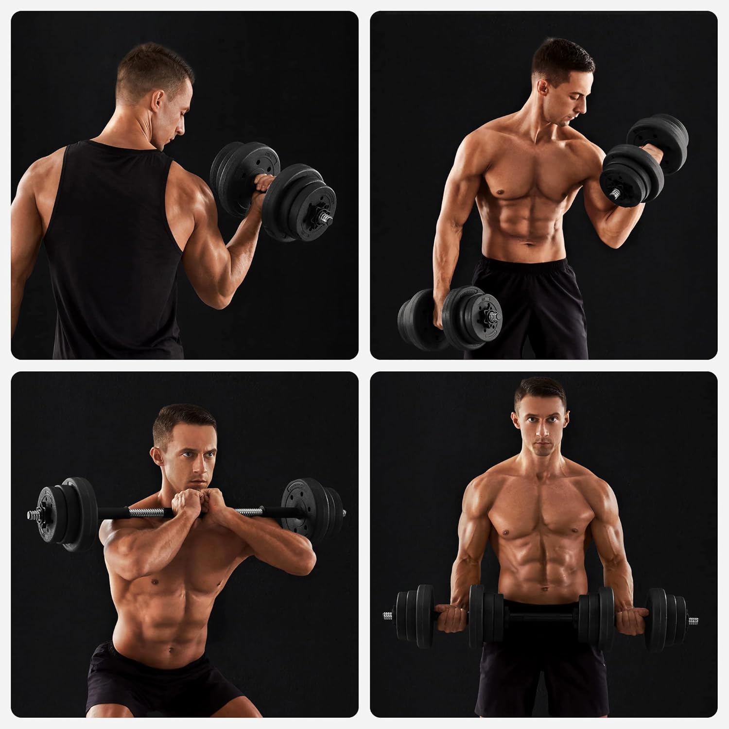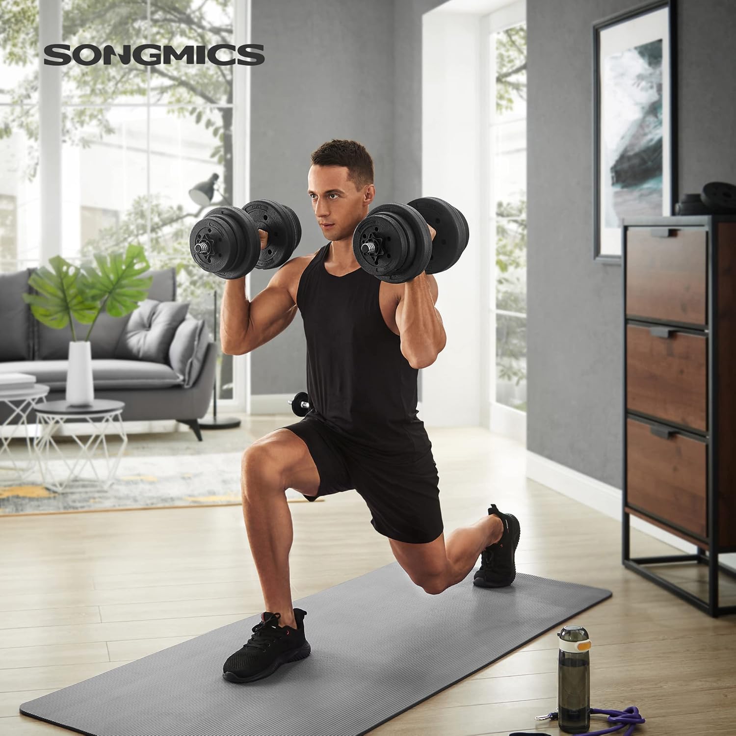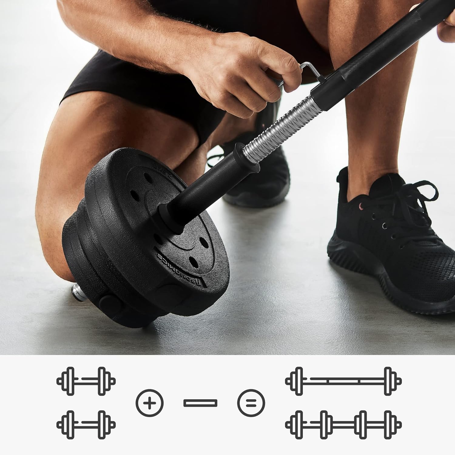 SONGMICS set gantere reglabile 2 in 1, 20 kg, cu bara extensie pentru haltera, discuri cu umplutura beton, negru Household NewTrend