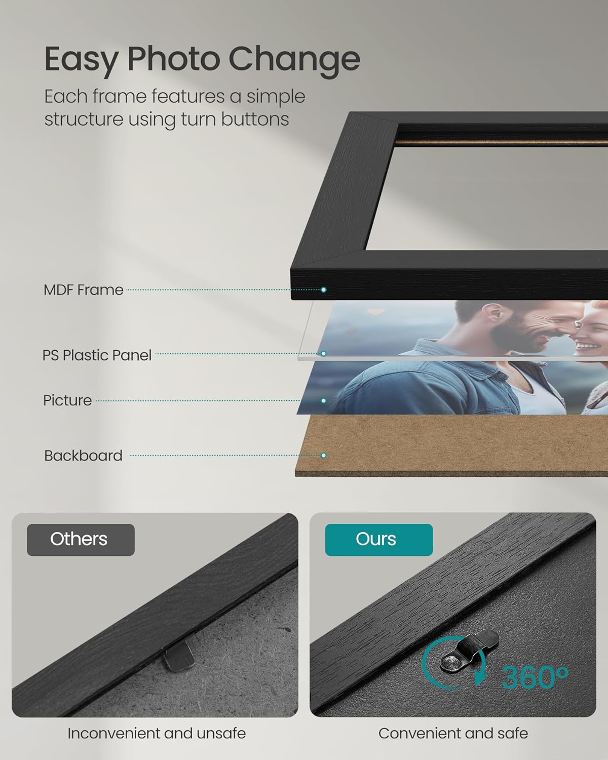 SONGMICS set rame foto 10 buc, 28x24 / 21x16 / 18x13 cm, negru, montaj perete sau birou, MDF si plastic Household NewTrend