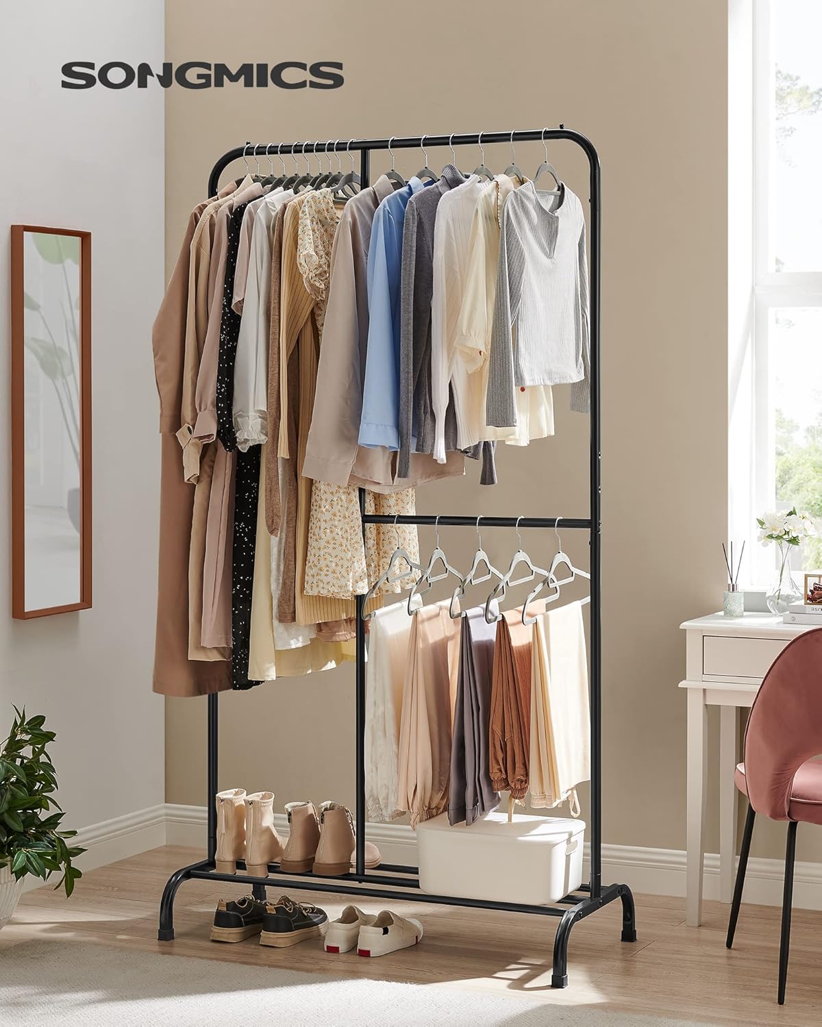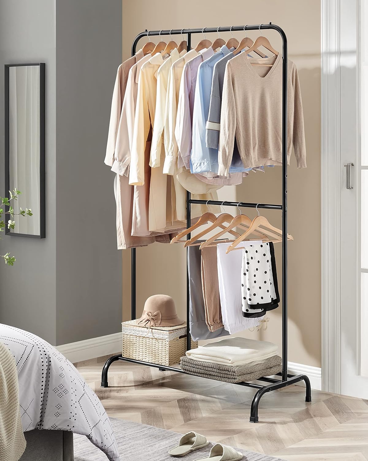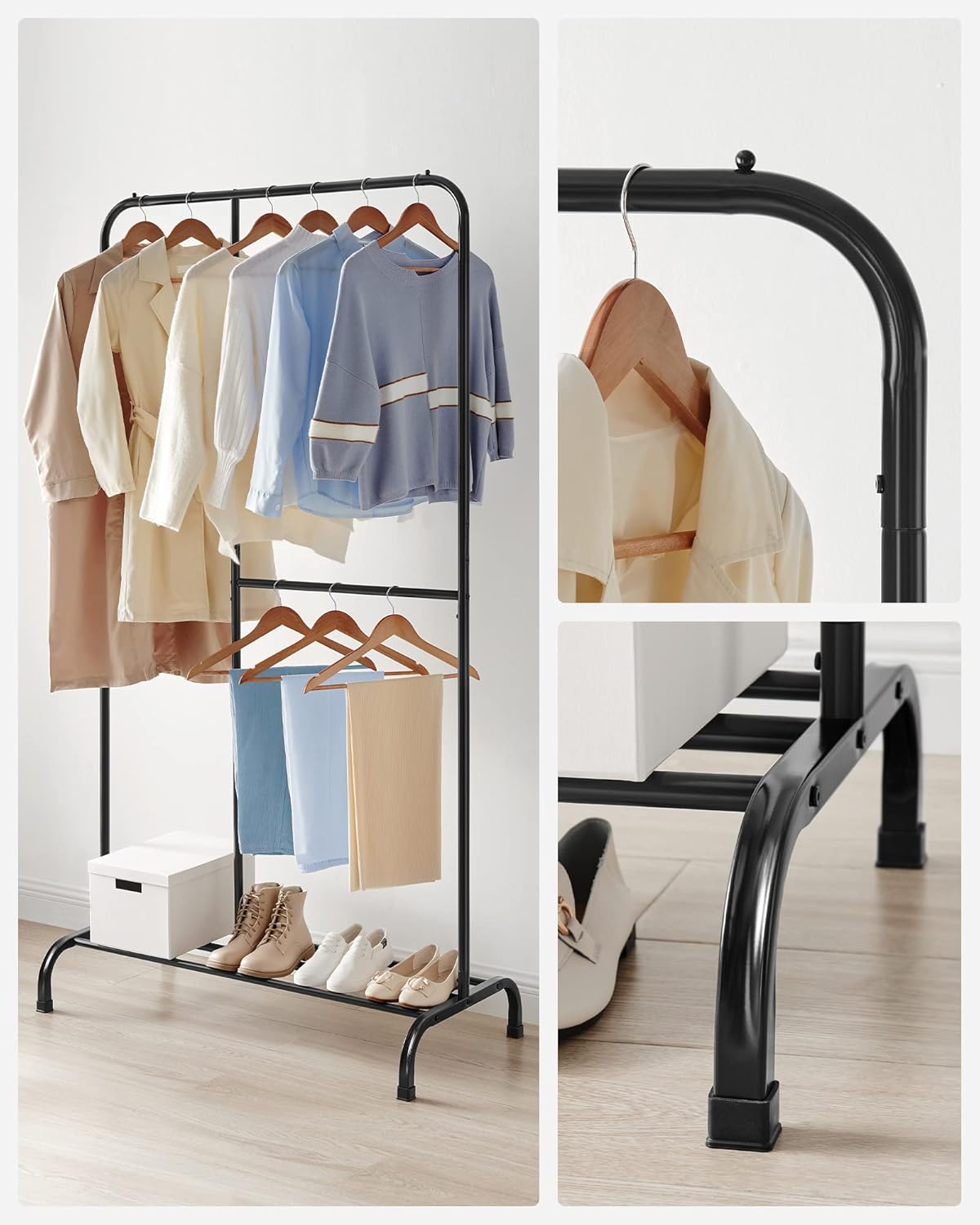 SONGMICS Stativ haine metalic 105x50x195 cm, cu bara ajustabila si 3 niveluri de depozitare, otel, negru Household NewTrend