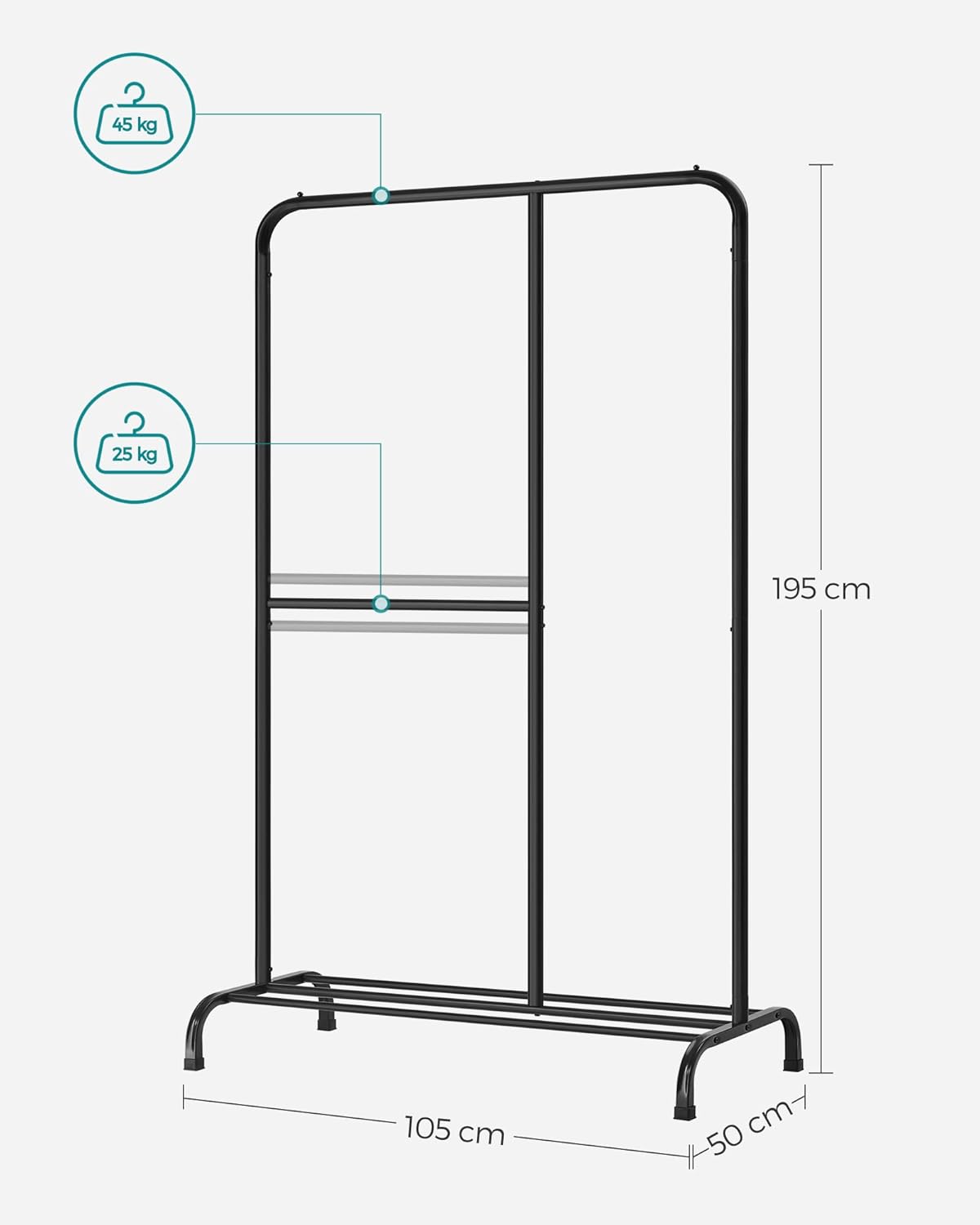 Descriere SONGMICS Stativ haine metalic 105x50x195 cm,