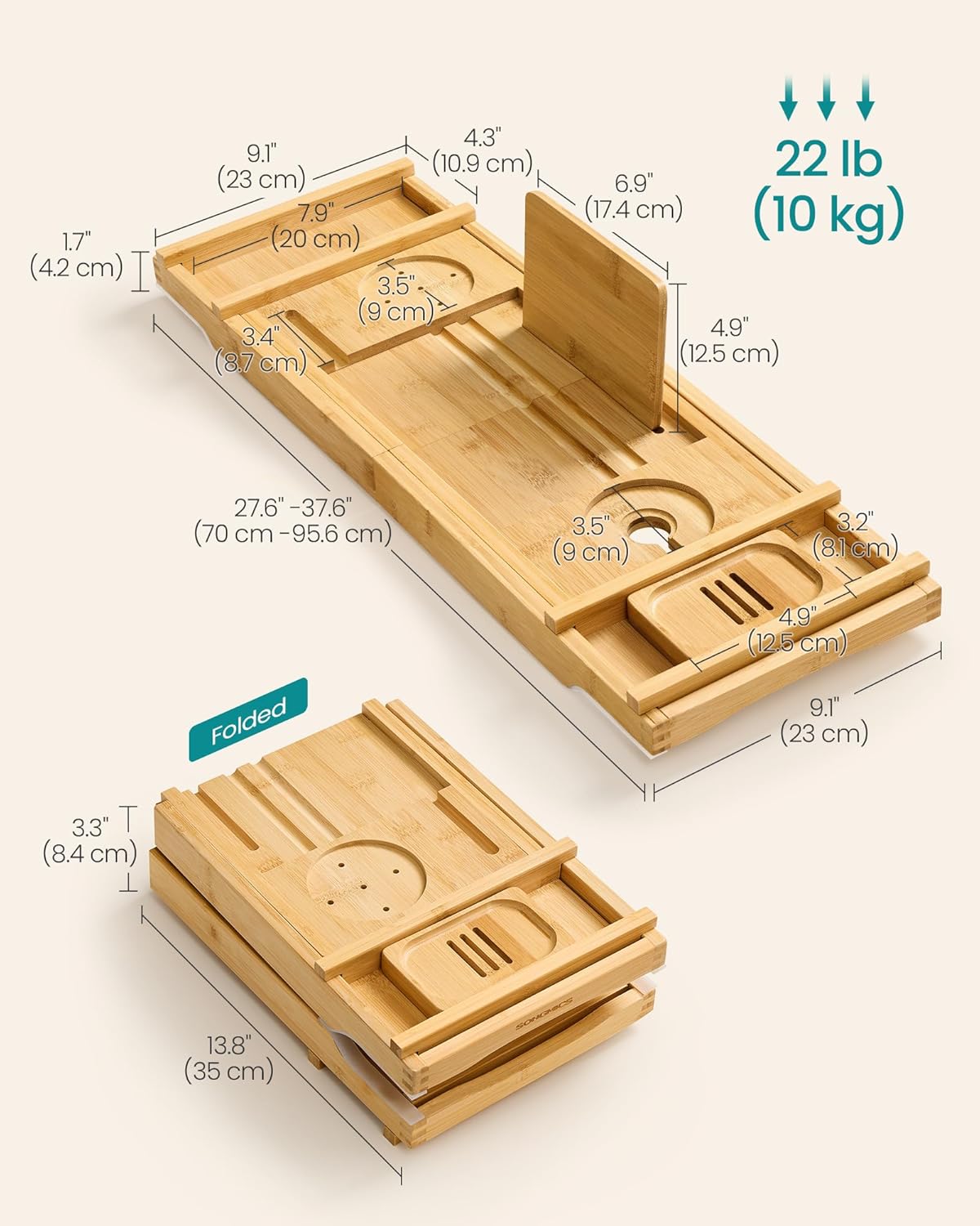 Descriere SONGMICS Suport cada extensibil bambus, pliabil,