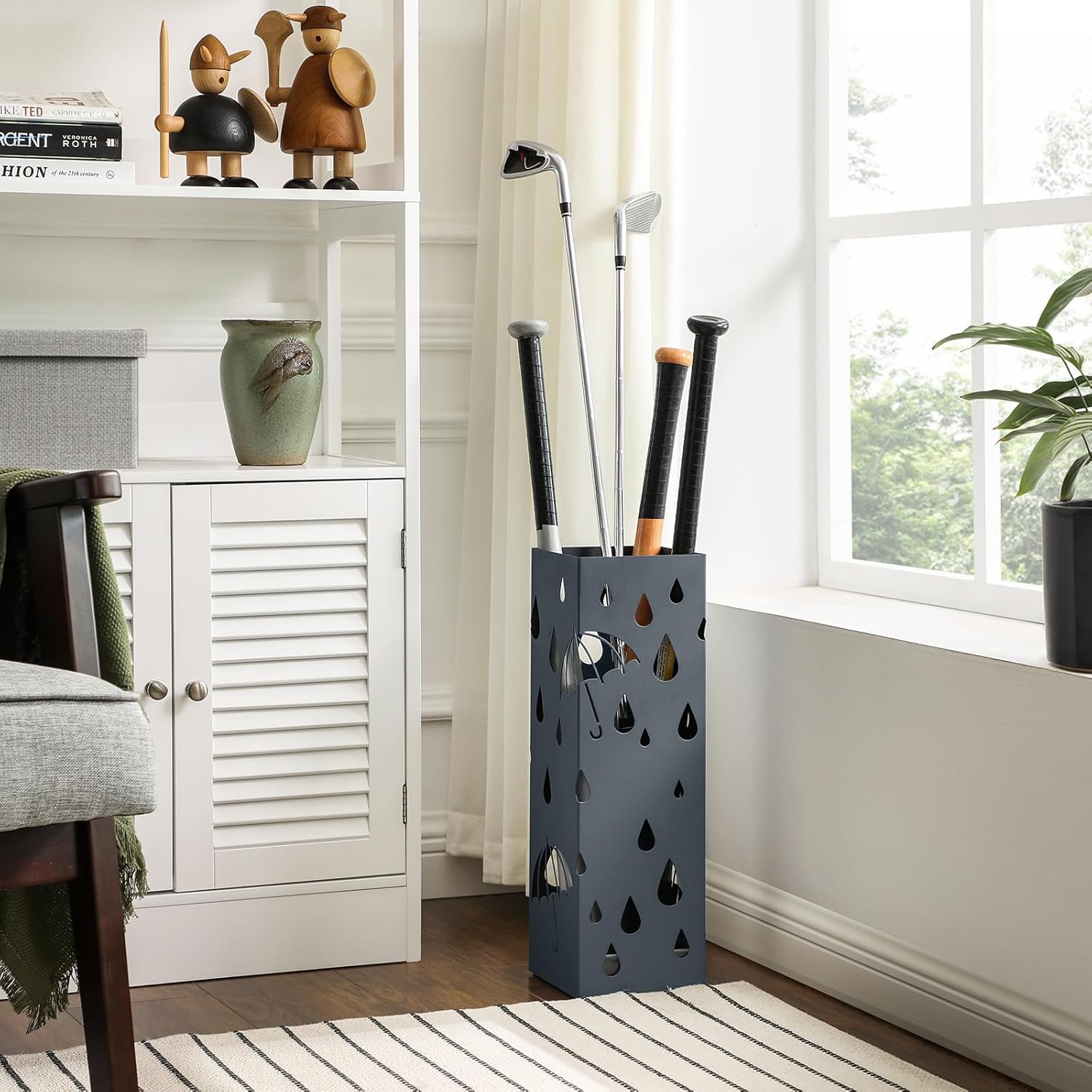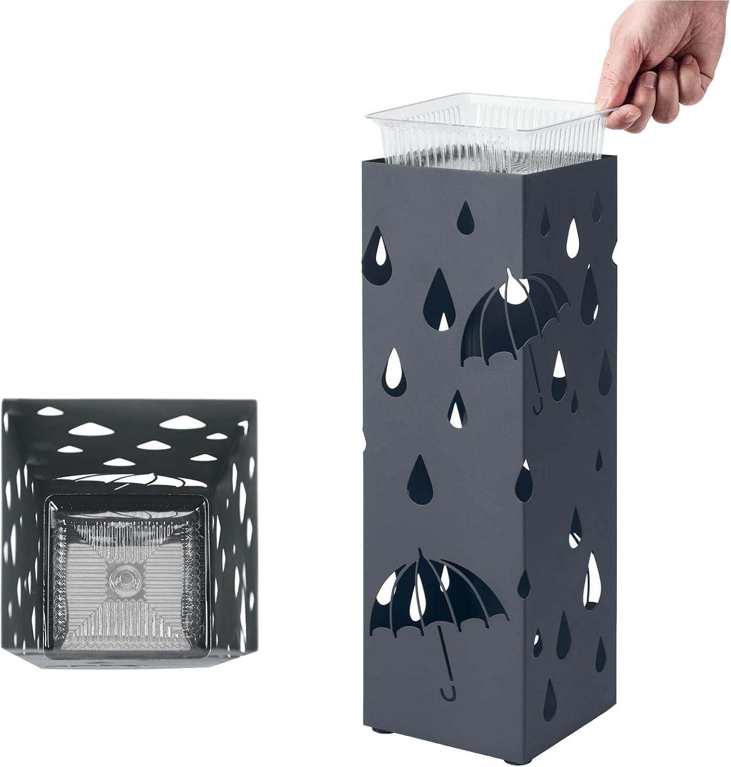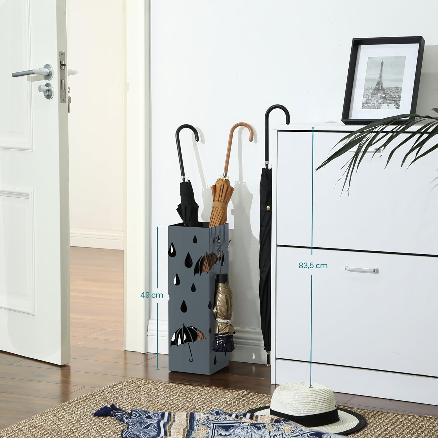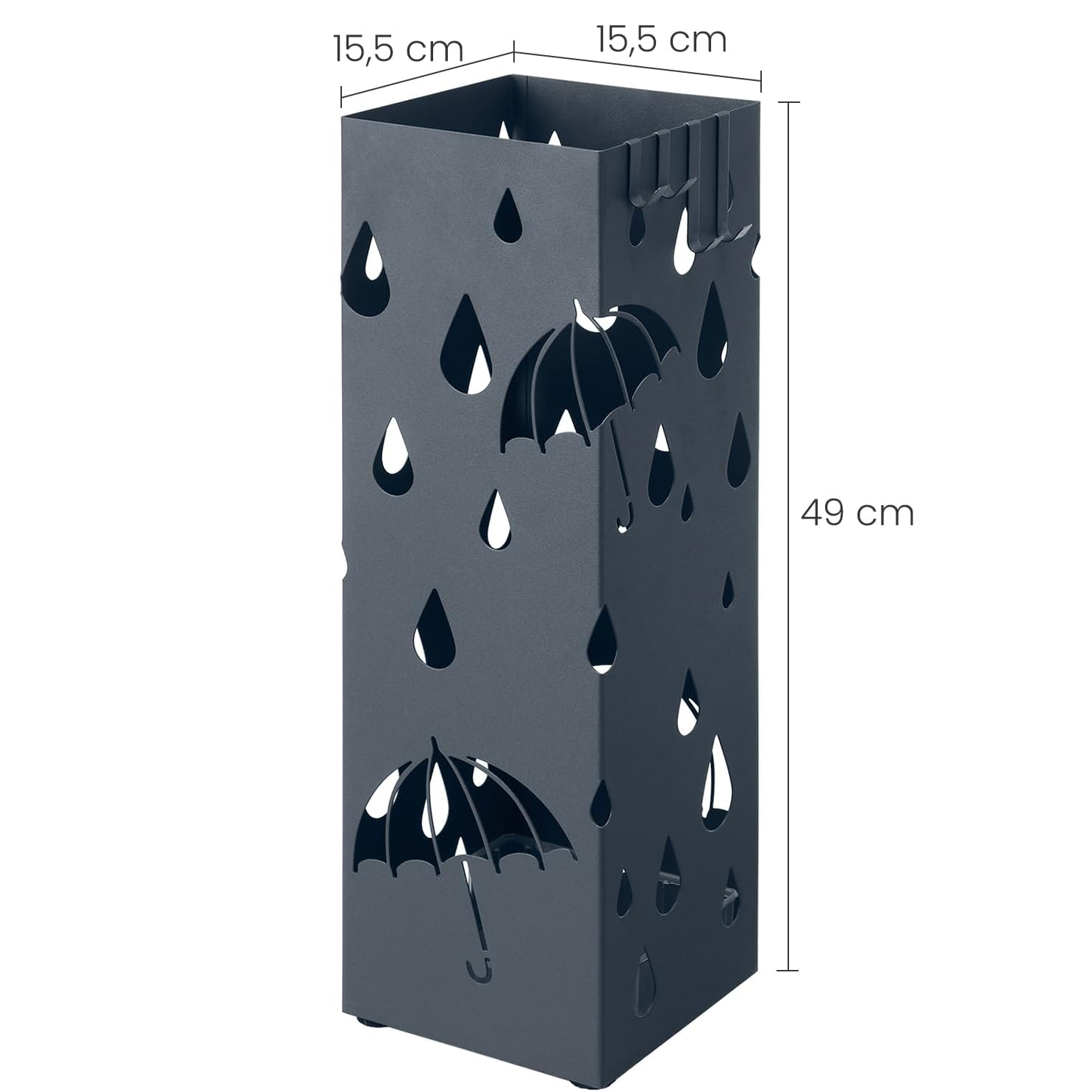 SONGMICS Suport metalic pentru umbrele, cu carlige si tava de picurare, 16x16x49cm, gri Household NewTrend