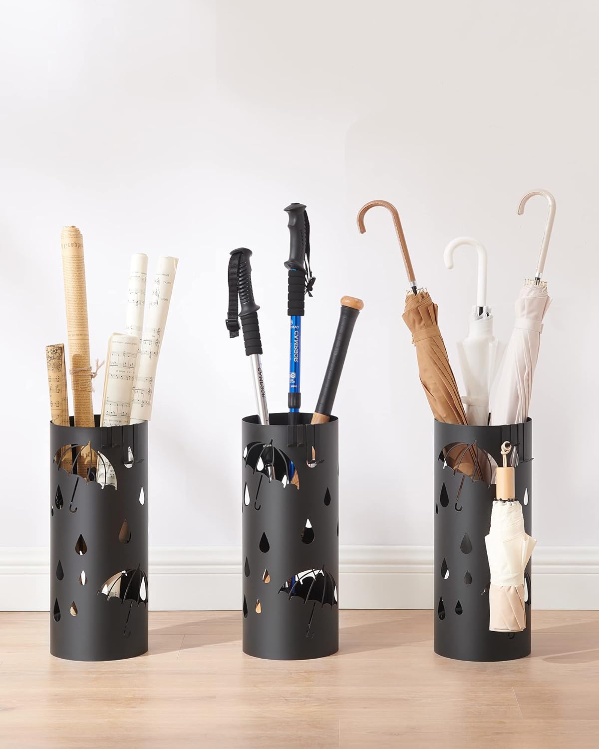 Descriere SONGMICS Suport metalic umbrele, carlige tava