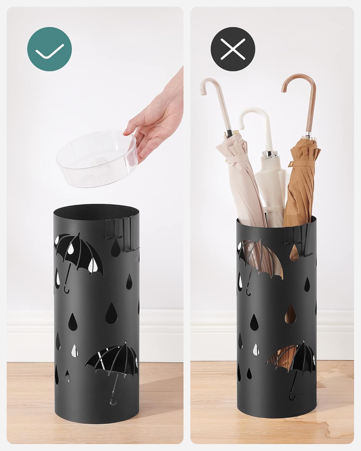 SONGMICS Suport metalic pentru umbrele, cu carlige si tava de picurare, 17x17x41cm, negru Household NewTrend