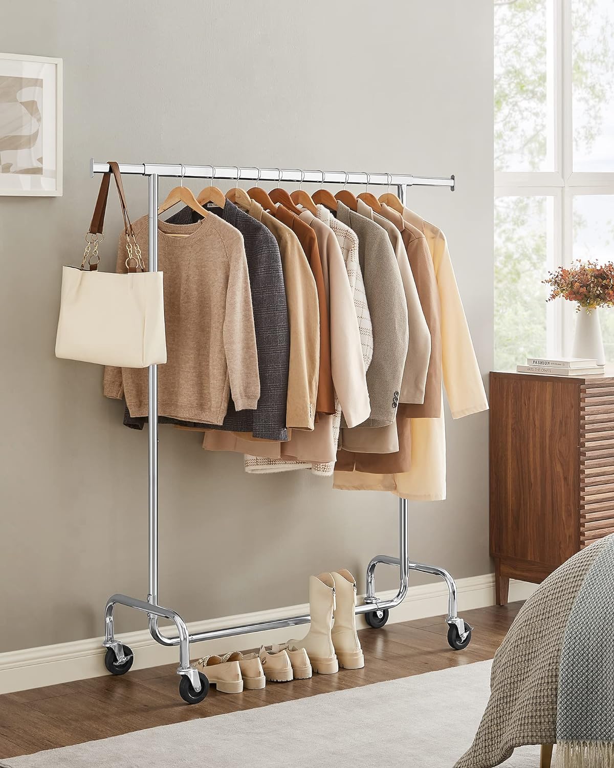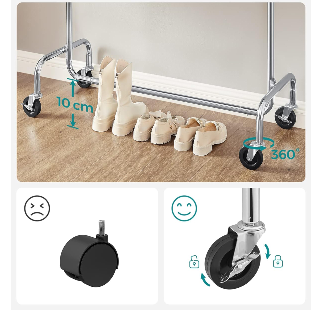 SONGMICS Suport pentru haine cu sina superioara extensibila, pe roti, reglabil pe latime, 45x(110-150)x160cm, inox argintiu Household NewTrend