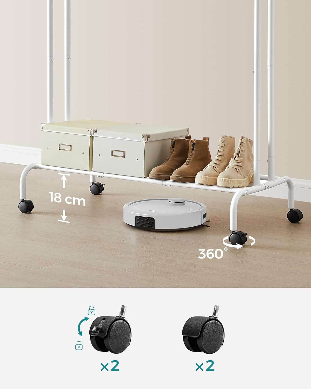 Descriere SONGMICS Suport haine roti, polita, sina